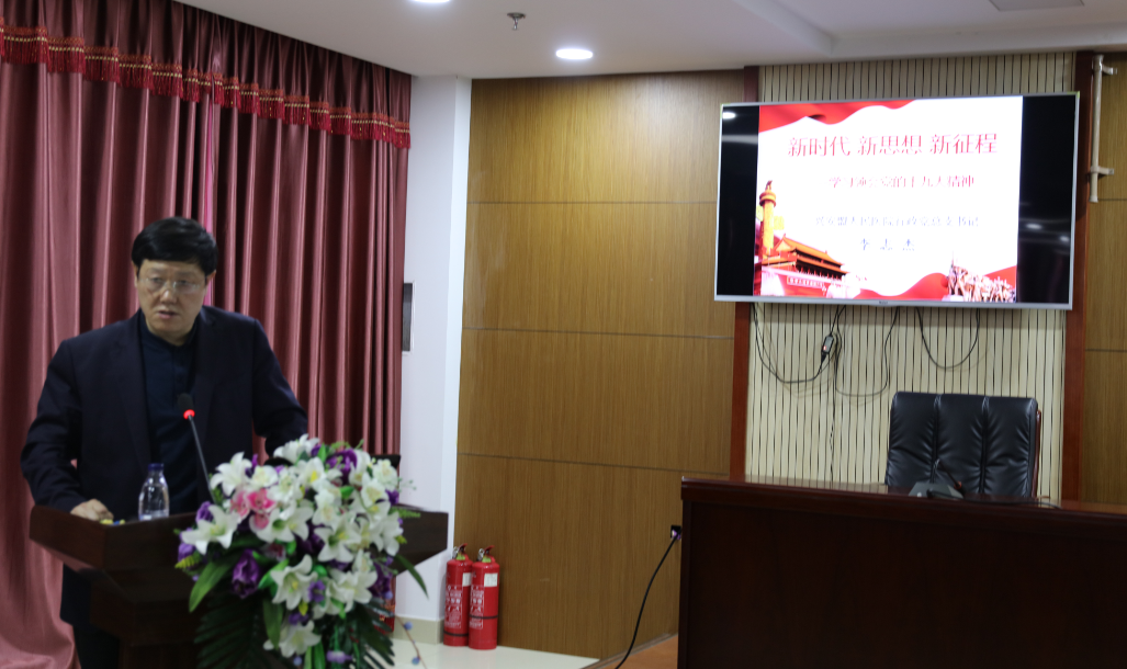 李志杰紧扣党的十九大精神实质,结合工作实际和自身心得体会,围绕“新时代、新思想、新征程”三个方面对十九大会议精神进行了深入浅出、高屋建瓴的全面解读。他要求与会人员掌握“十个方面重大成就”、“新时代中国特色社会主义十四条基本方略”、“新时代中国特色社会主义行动纲领”等重点内容,在实现中国民族伟大复兴中国梦的进程中,发挥好“四个伟大”、“四个自信”、“四个意识”的引航和推进作用。
