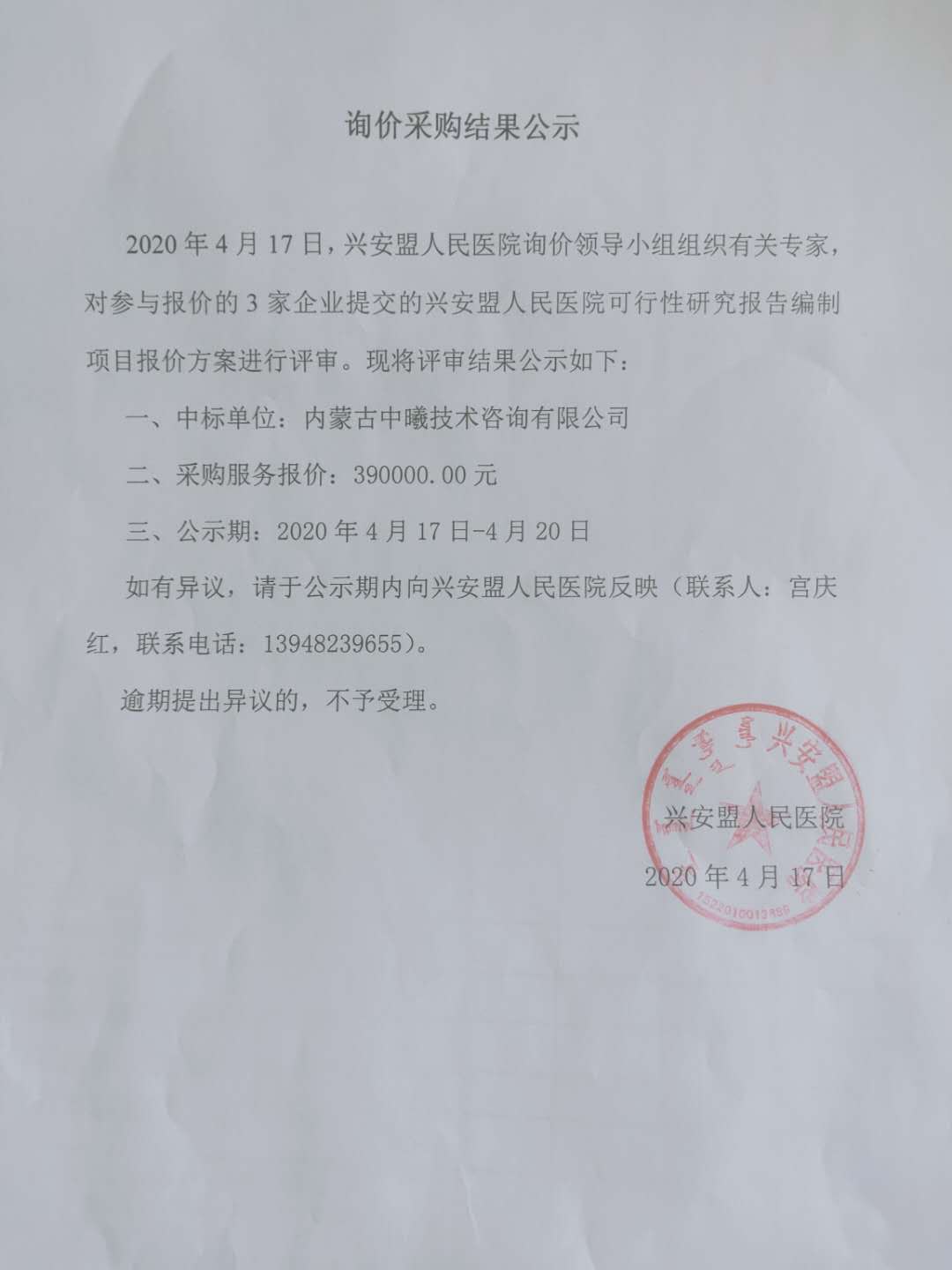兴安盟人民医院社会稳定风险评估报告中标结果公示