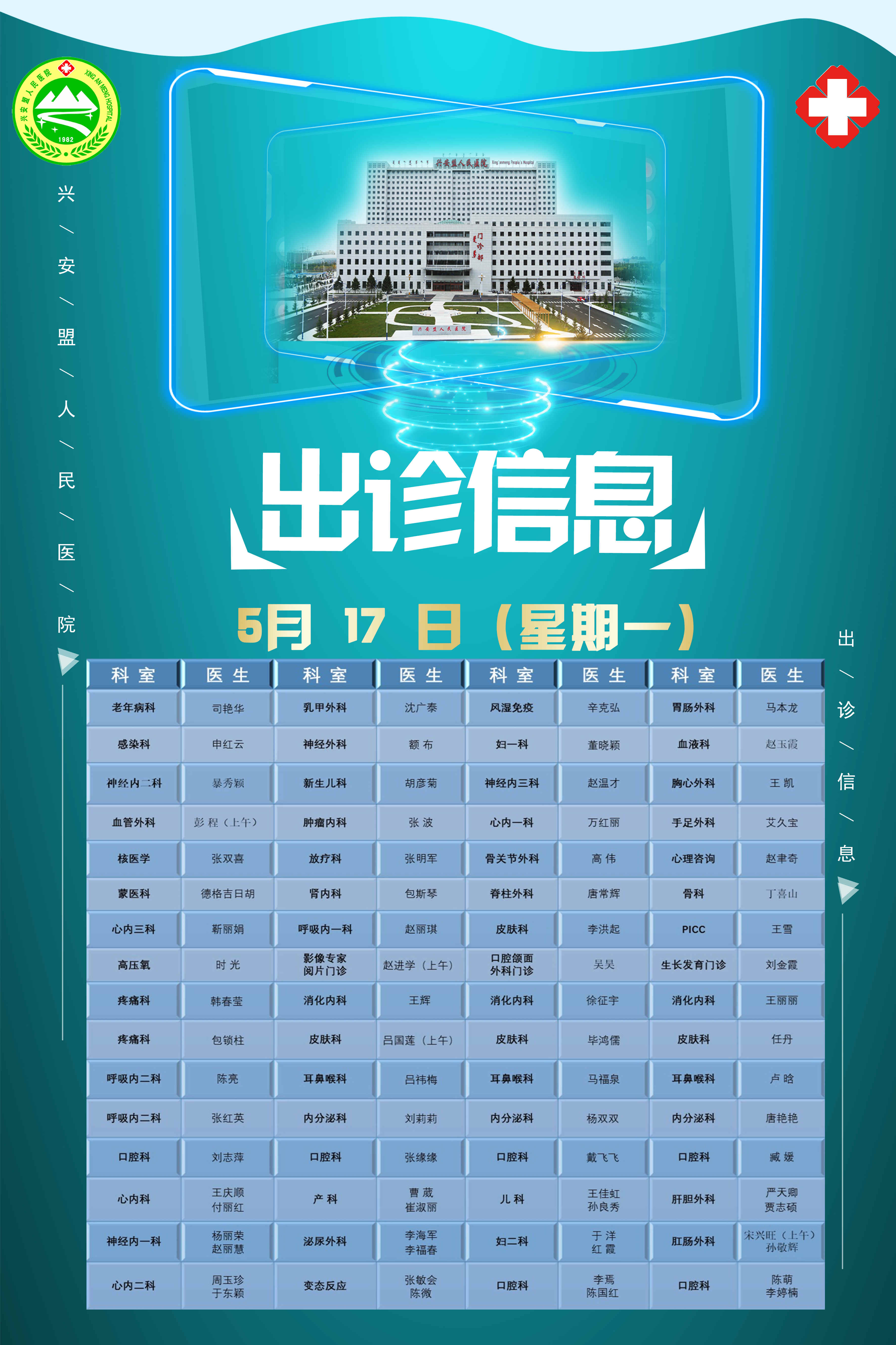2021年5月17日至19日中医院、眼科医院门诊出诊信息