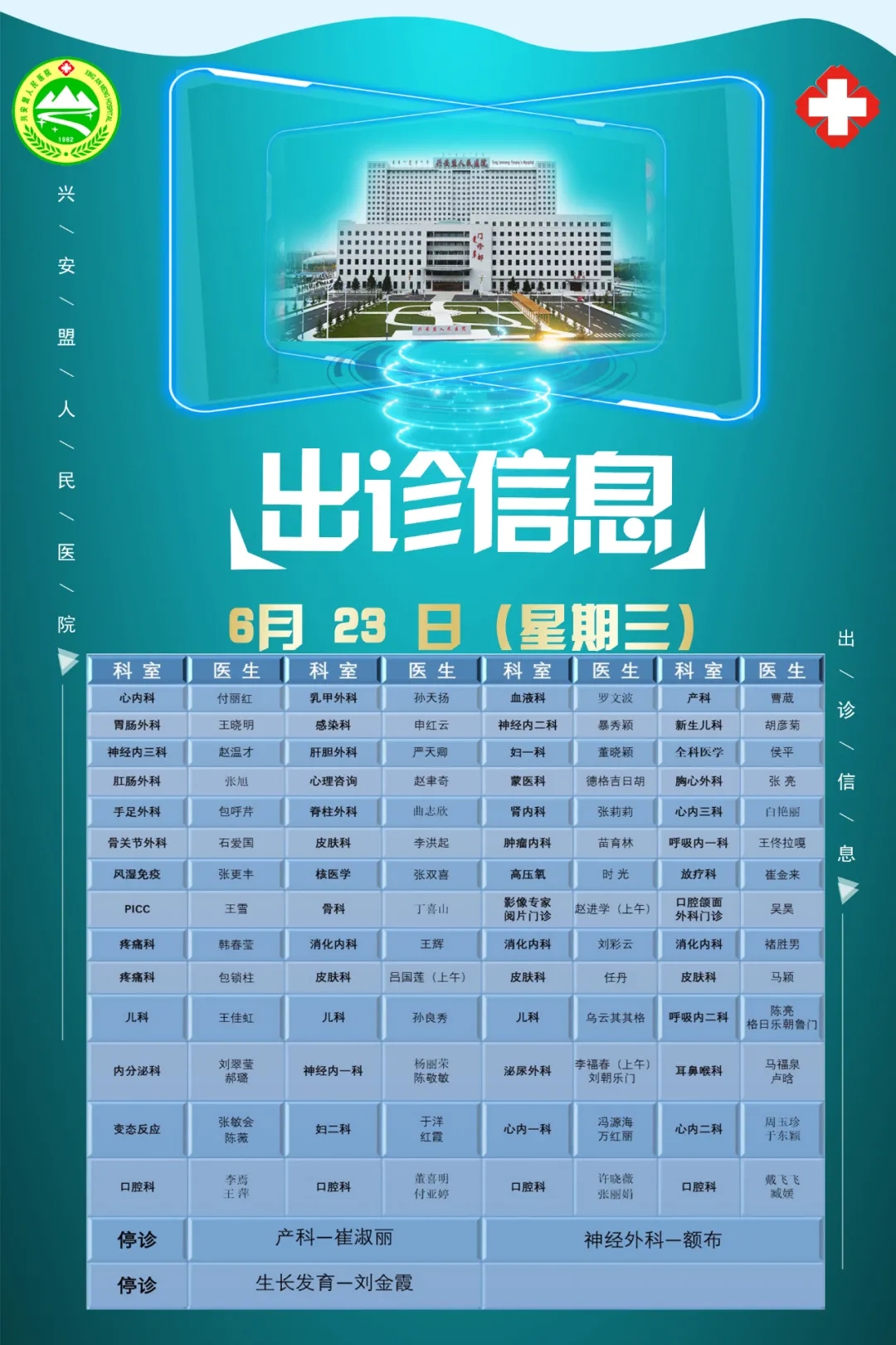2021年6月19日至20日中医院、眼科医院门诊出诊信息