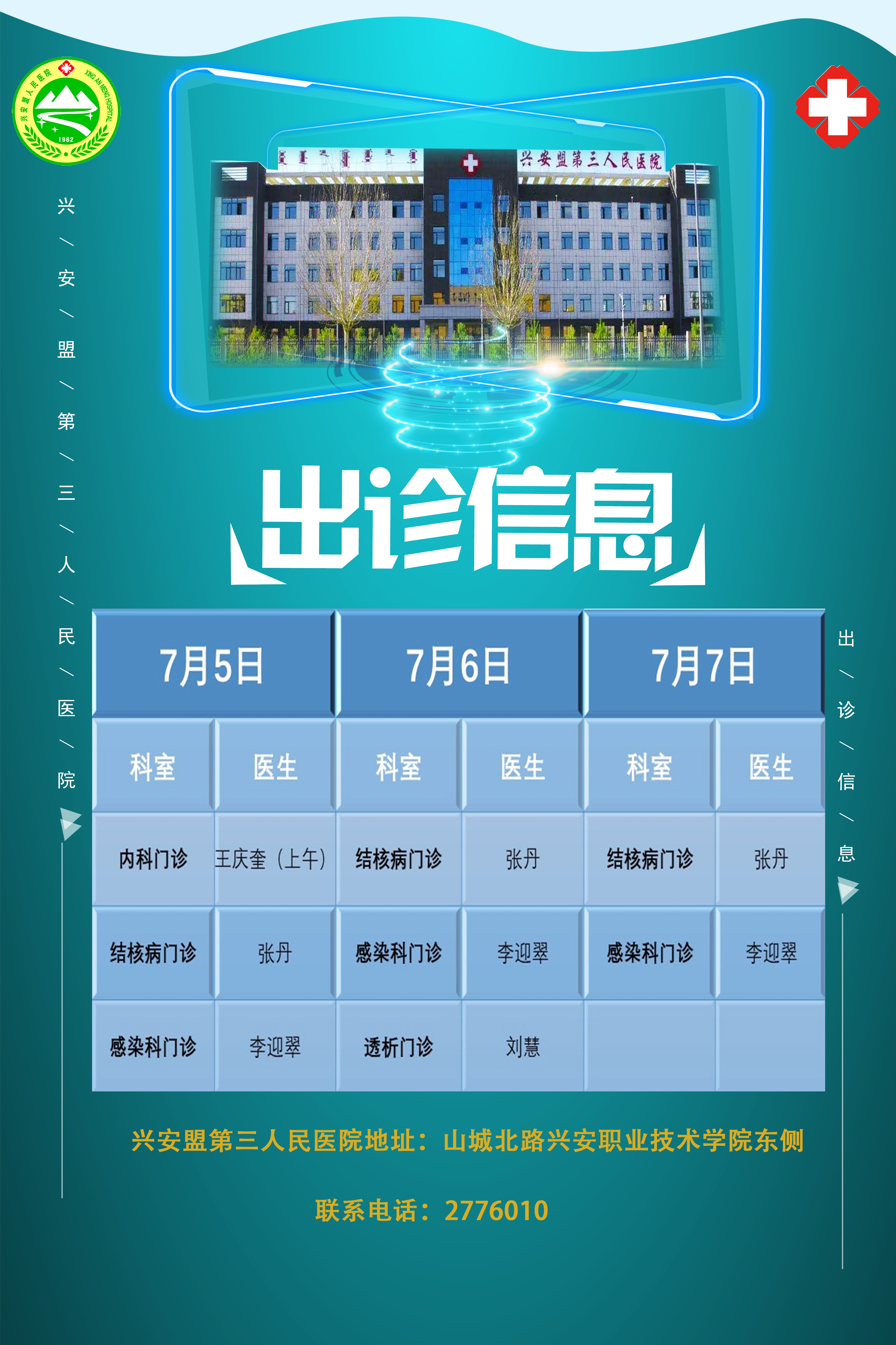 2021年7月5日至7日第三人民医院门诊出诊信息