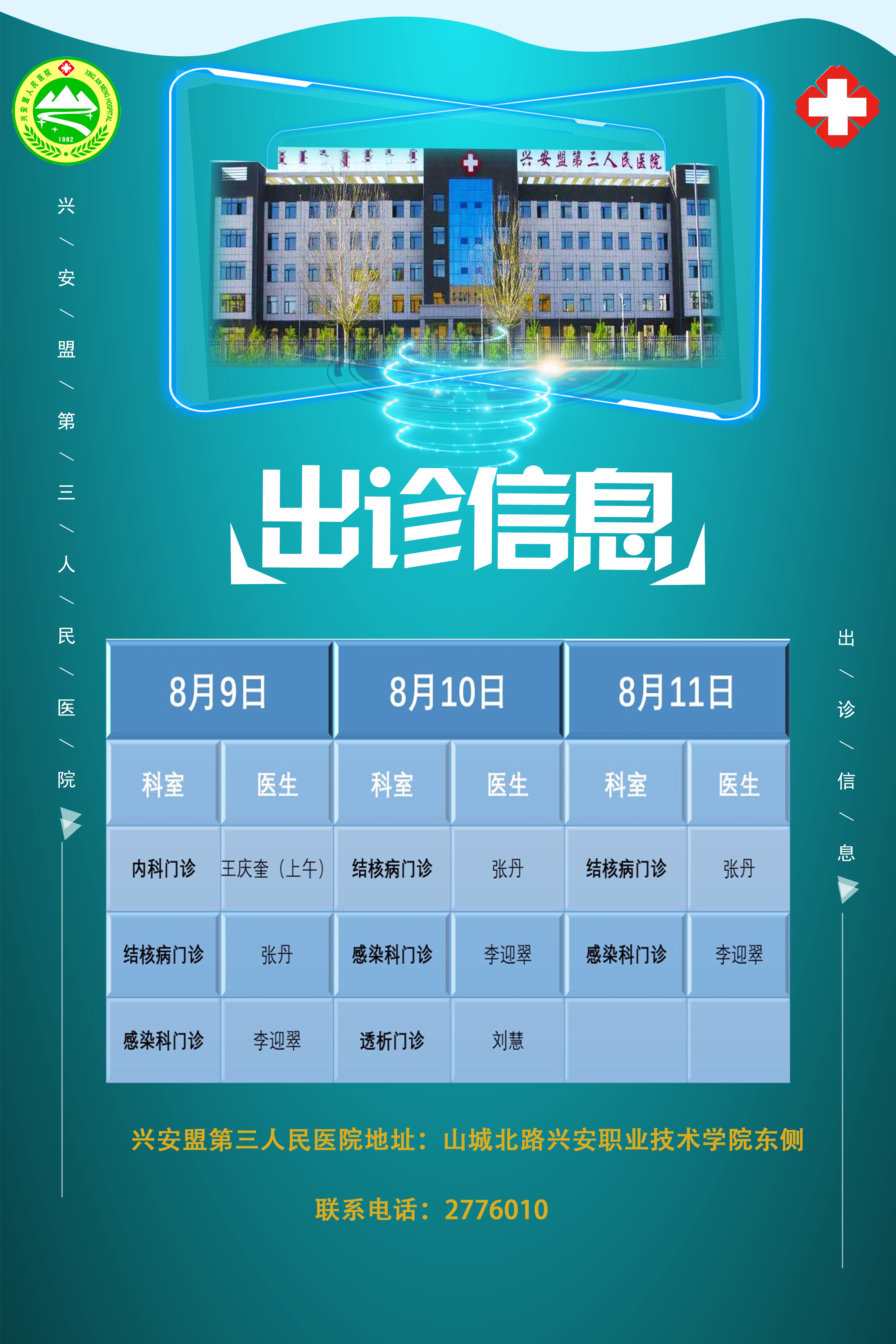 2021年8月9日至11日第三人民医院门诊出诊信息
