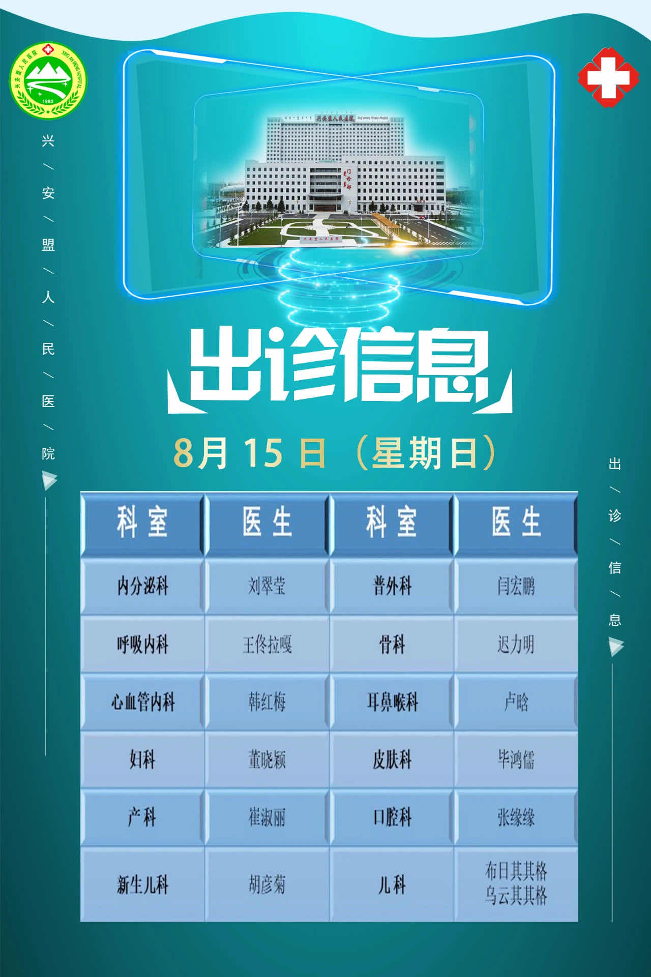 2021年8月14日至15日中医院、眼科医院门诊出诊信息