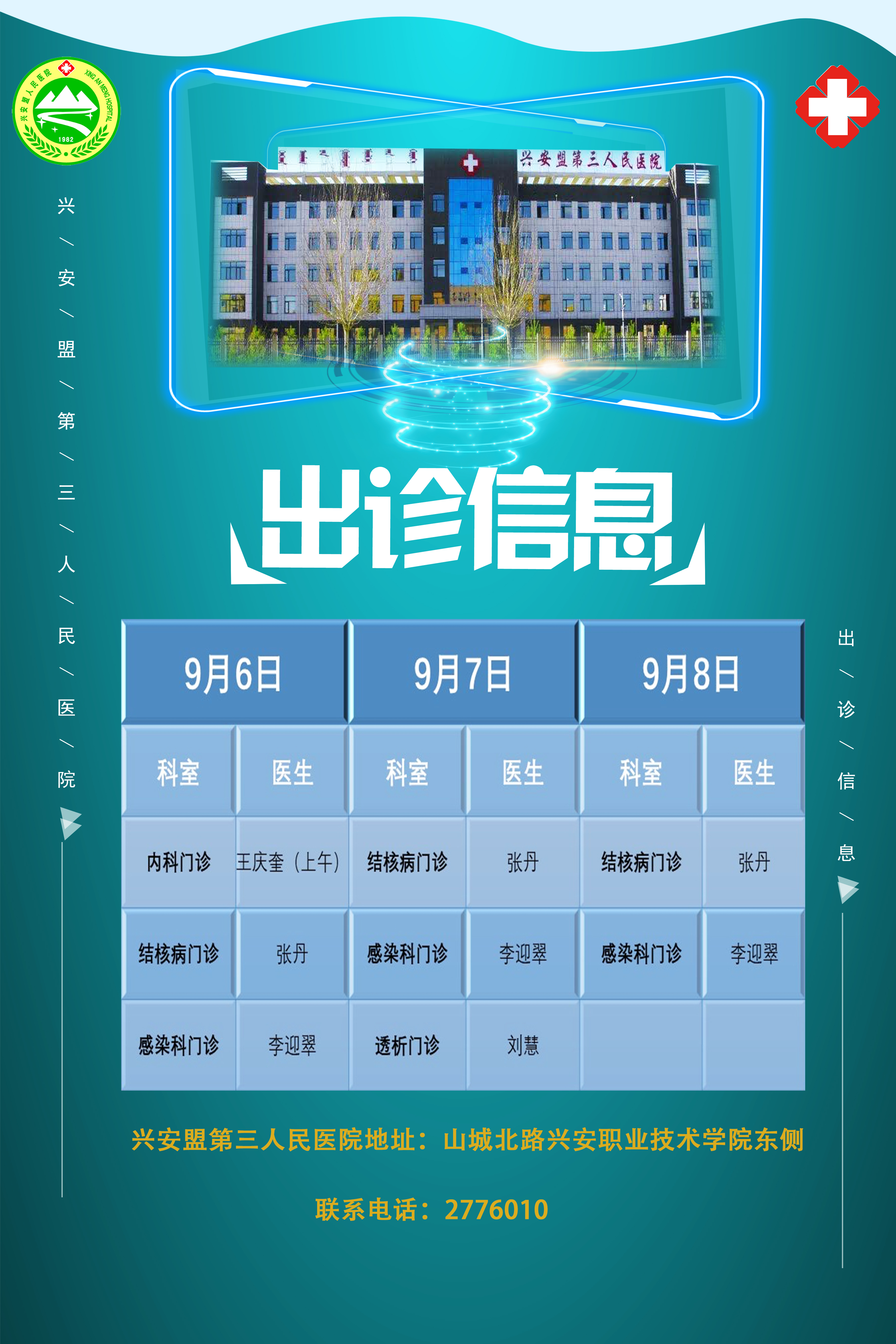 2021年9月6日至8日第三人民医院门诊出诊信息