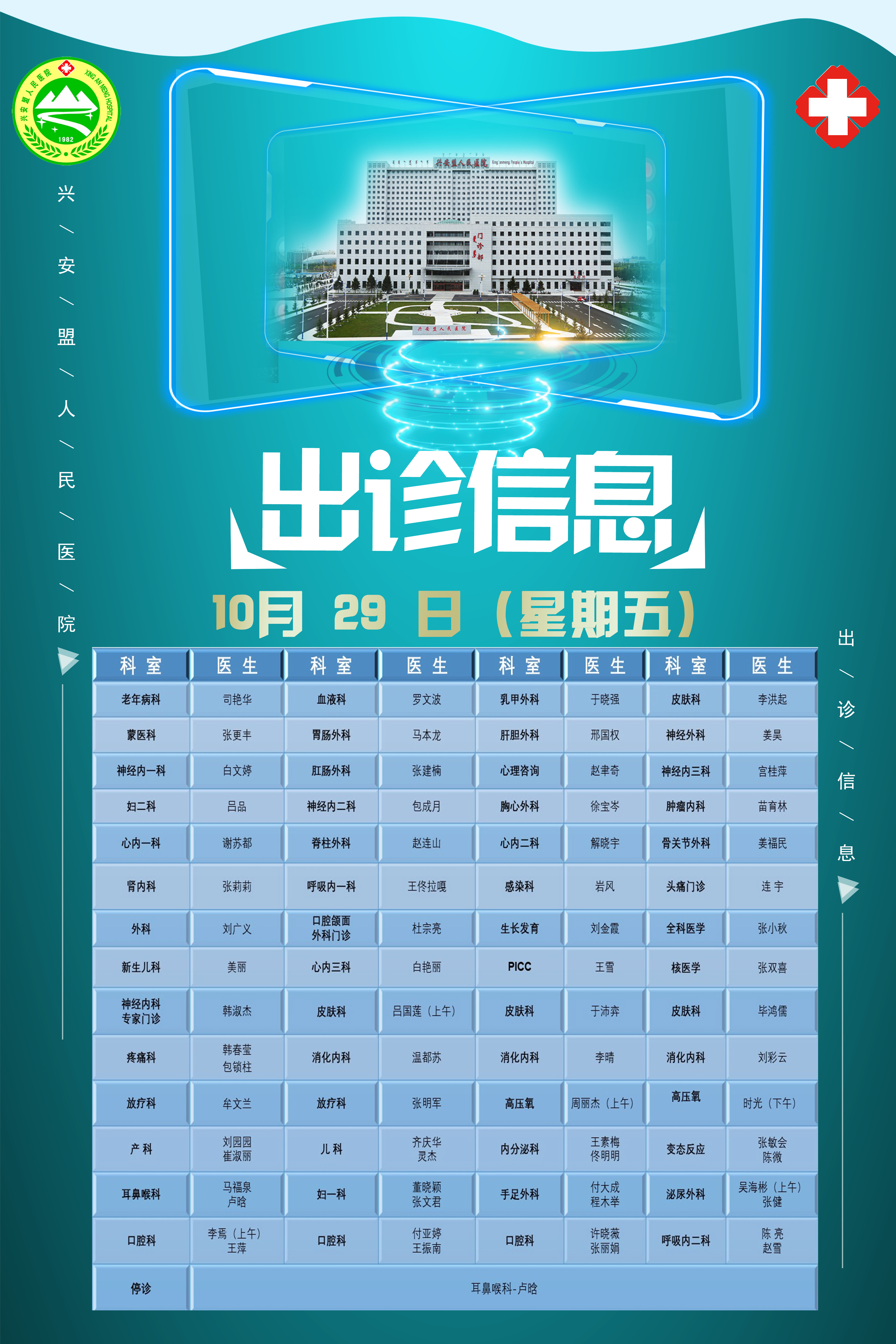 2021年10月25日至27日中医院、眼科医院门诊出诊信息