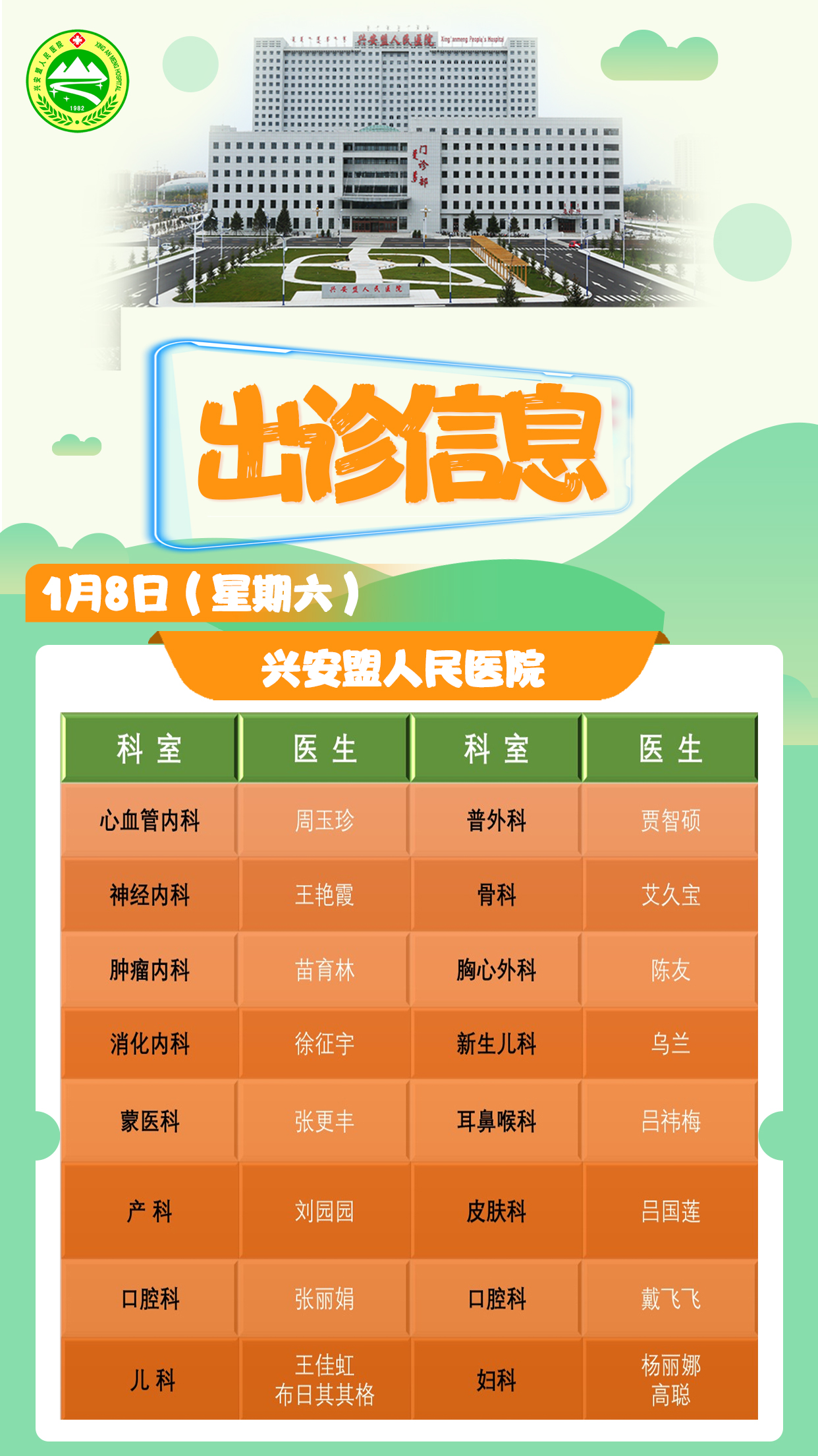 2022年1月10日至12日中医院、眼科医院门诊出诊信息