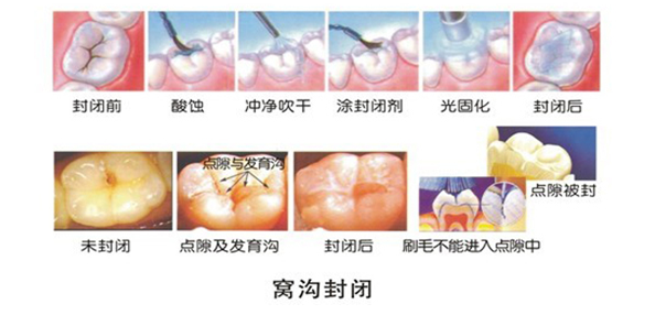 在儿童初萌的牙面上,尤其是后牙的咬合面上,有一些自然形成的裂隙和窝沟,容易嵌塞食物残屑不宜清除,所以这些地方就容易发生龋齿。为了防止这种情况,口腔医师可以运用窝沟封闭技术将一种高分子流动材料导入窝沟点隙,光固化之后使材料与窝沟紧密结合,达到防止食物残渣积存,预防或减少龋坏的发生。研究证明,窝沟封闭技术预防龋齿率可达到90%以上。