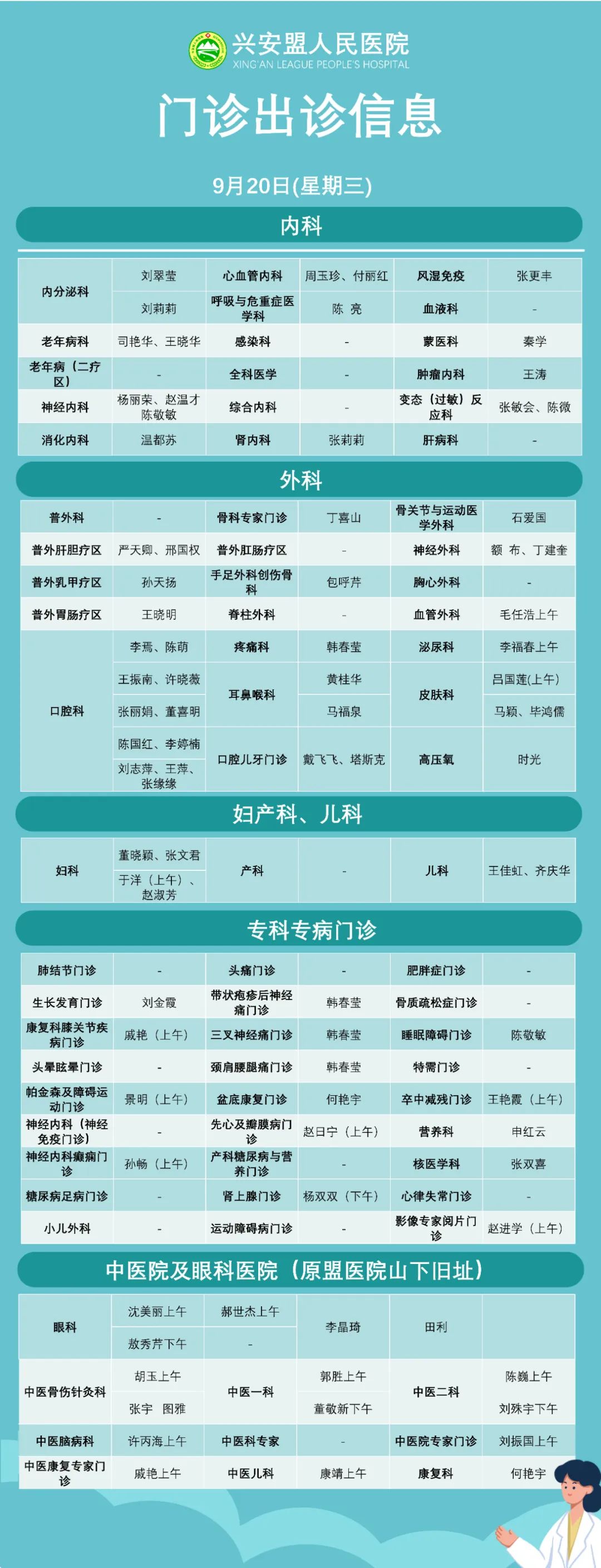 『出诊信息』盟人民医院9月18日-9月22日门诊出诊信息