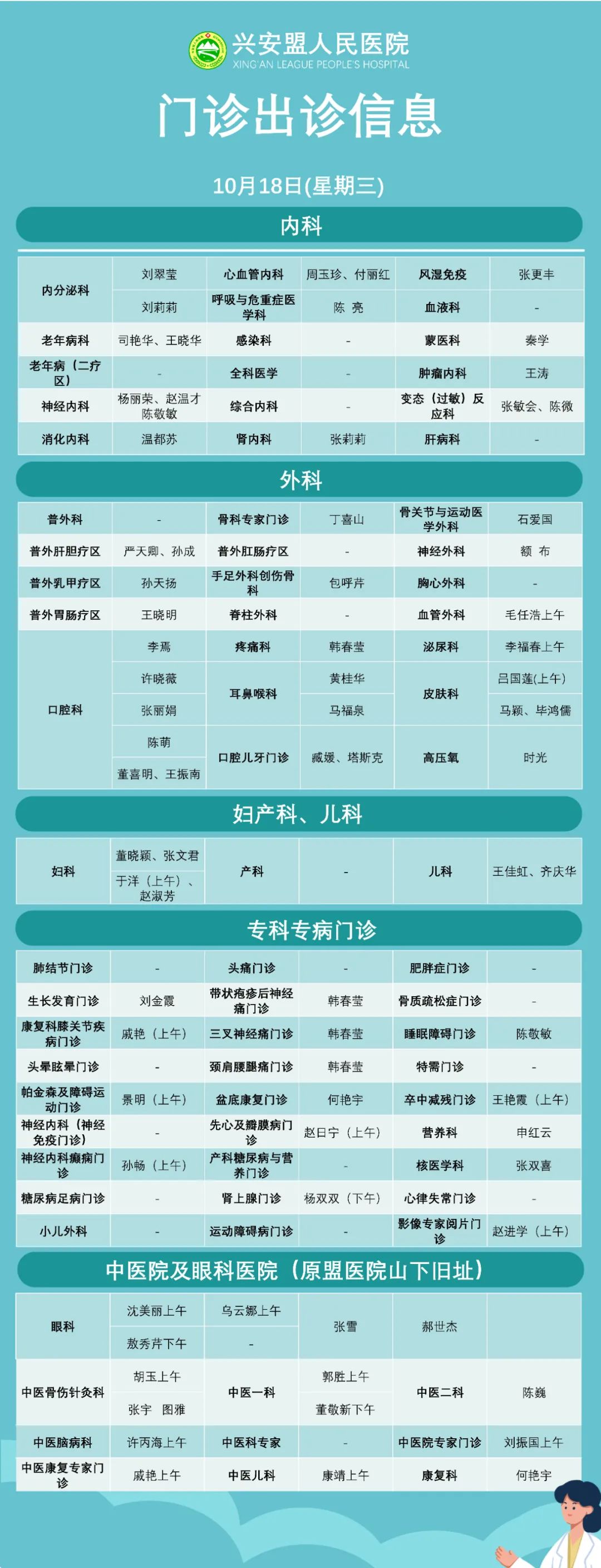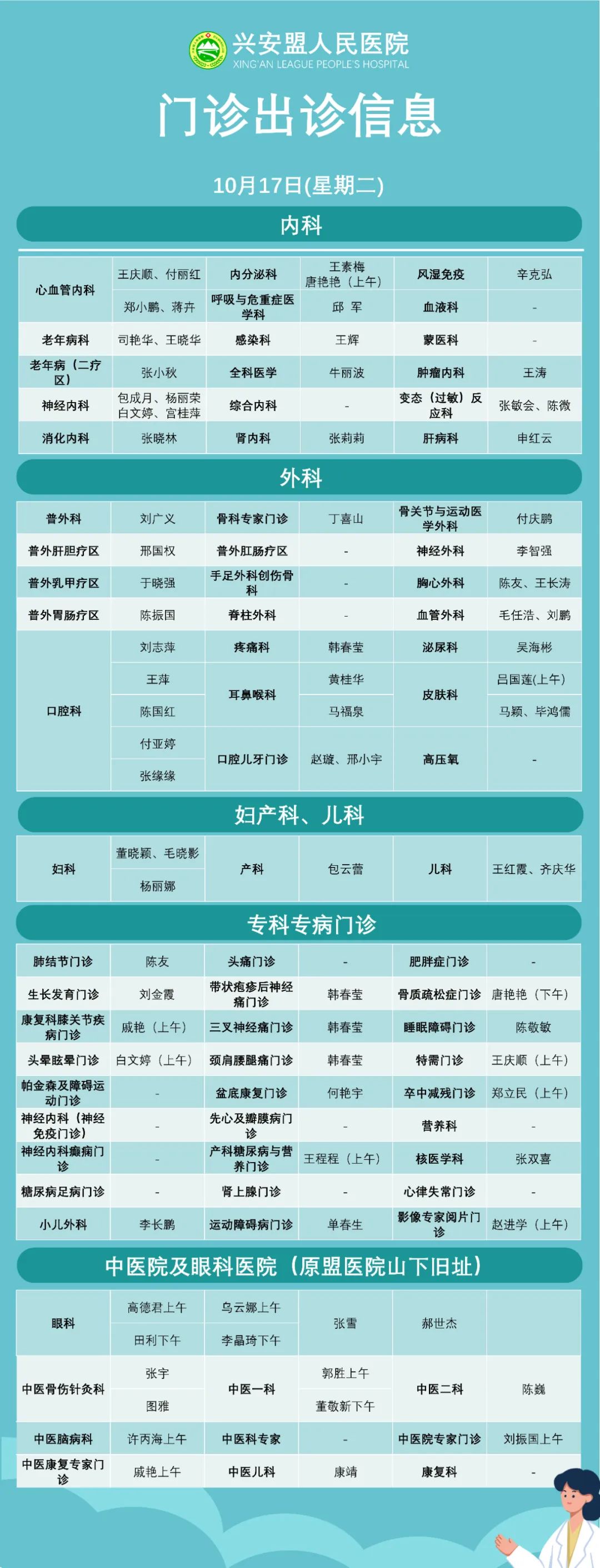 『出诊信息』盟人民医院10月16日-10月20日门诊出诊信息