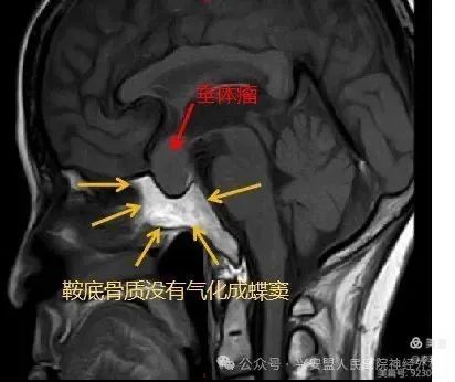 头颅核磁及头颅CT骨窗可见气化不良的甲介型鞍底