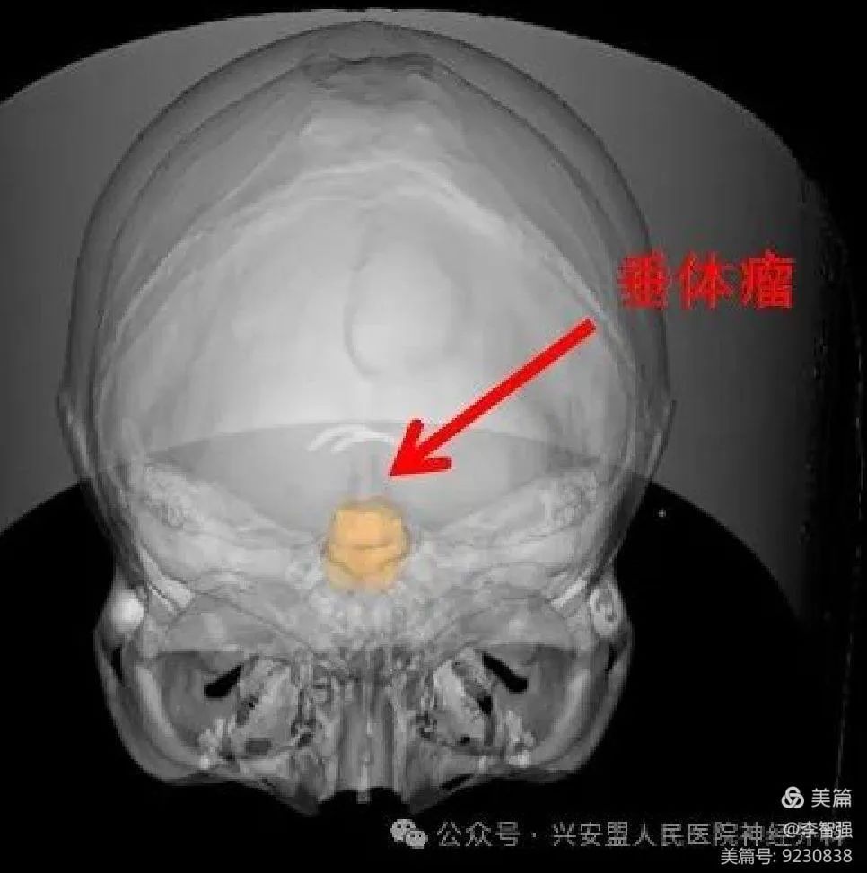 立体定向手术机器人和神经内镜的完美结合应用,保障了患者的安全,取得良好的效果。打破以往此类甲介型鞍底垂体瘤开颅手术的老式手术方式,避免了经鼻蝶手术的无定向引导易迷路造成血管神经损伤严重并发症,打开了盟医神外团队治疗甲介型鞍底垂体瘤的新途径,真正做到了破茧成蝶。垂体瘤相关科普:垂体瘤,又名垂体腺瘤,是一种起源于腺垂体、神经垂体以及胚胎期颅咽管囊残余鳞状上皮细胞的常见的中枢神经系统肿瘤,占颅内肿瘤的10%-20%,其高发年龄在30-60岁。垂体瘤多发于垂体前叶(腺垂体),在组织学上是良性肿瘤。根据症状不同,垂体瘤可分为两大类,即功能性垂体瘤和非功能性垂体瘤。