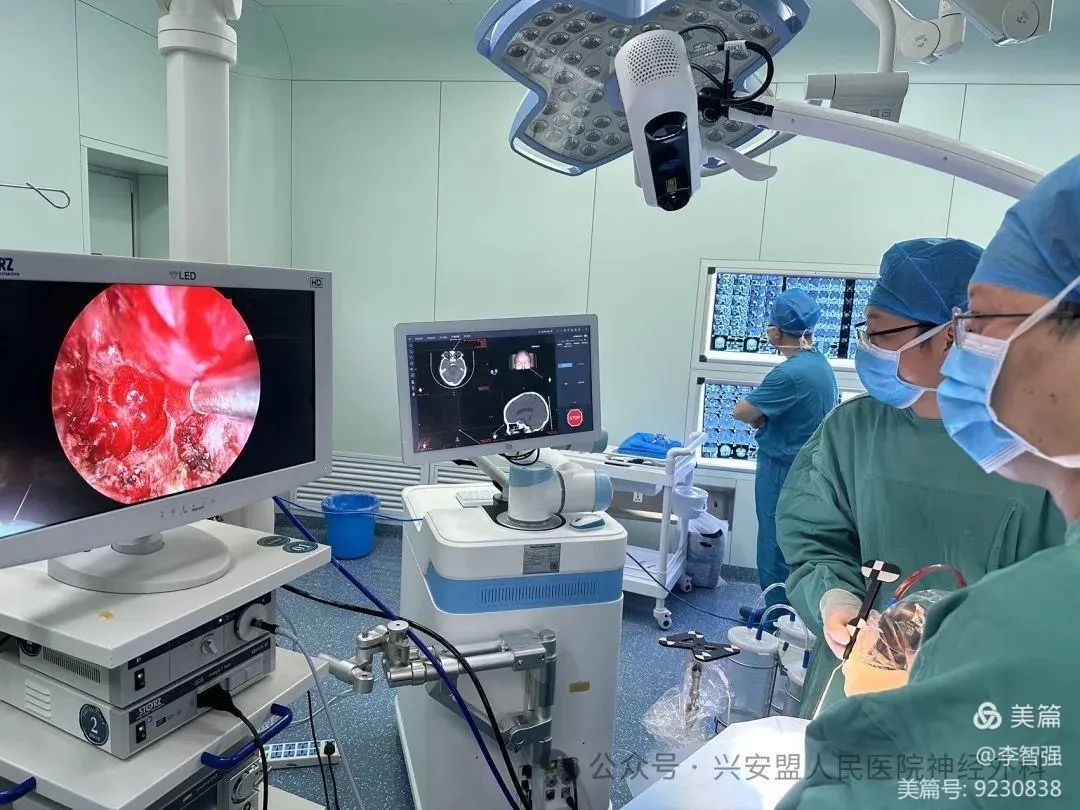 术前立刻启动MDT多学科会诊,在麻醉科、内分泌、眼科、心内科严密的病情评估下,启用立体定向手术机器人,通过神经内镜经鼻入路,实现精准、安全、有效的手术方法。