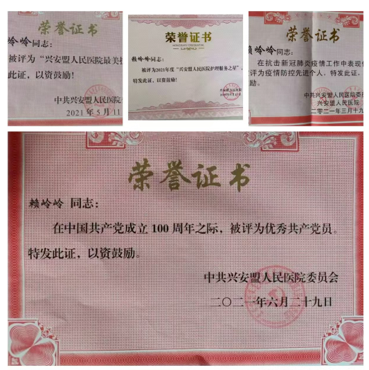 面对突如其来的新冠疫情,赖岭岭更是冲锋在前,主动请缨前往发热门诊。作为科里的一名蒙族护士,她不仅承担着繁重的医疗护理工作,还主动承担起翻译与解释的工作,为沟通不畅的患者及家属架起了一座理解与信任的桥梁。她的勇敢与担当,赢得了同事们的尊敬与患者的感激。在这场没有硝烟的战争中,赖岭岭以实际行动践行了一名共产党员的初心与使命,成为了疫情防控的先锋与楷模。