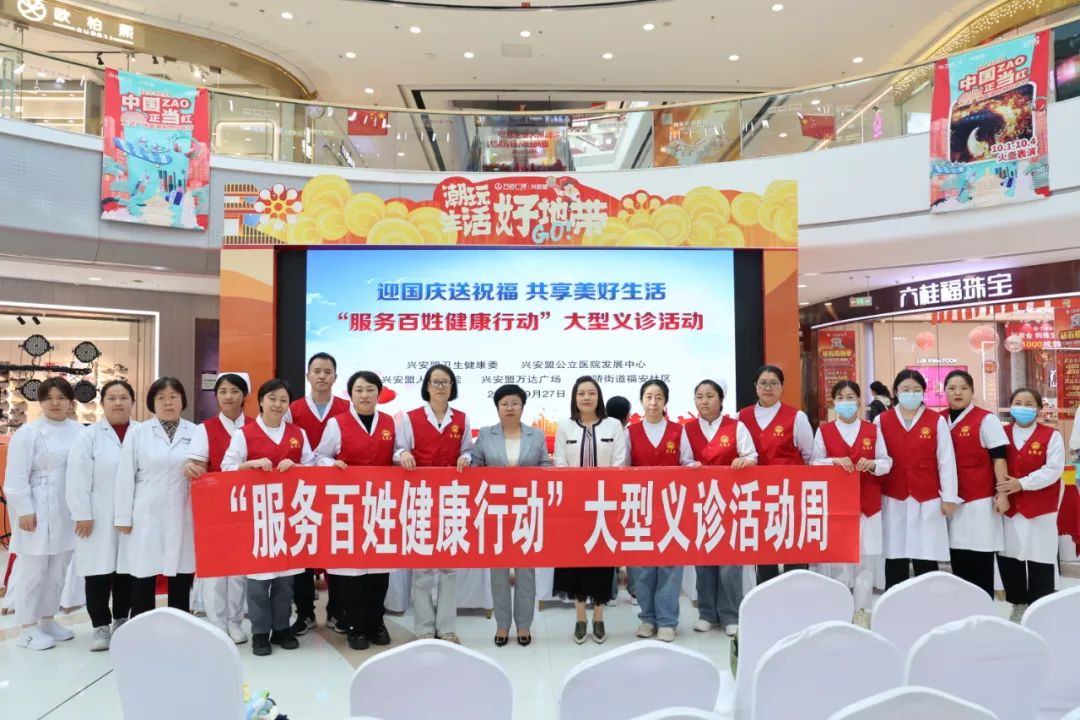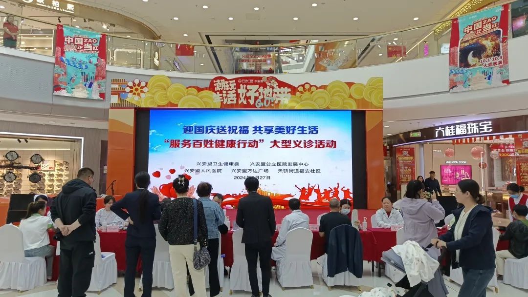 为充分发挥青年干部在铸牢中华民族共同体意识工作中的生力军作用,展示青年干部的责任与担当,按照自治区“服务百姓健康行动”部署,在盟卫生健康委的指导下,给群众在家门口就医看病创造便利条件,不断满足群众多层次、多样化的健康需求,9月27日,在兴安盟万达广场,兴安盟公立医院发展中心、兴安盟人民医院联合开展“迎国庆送祝福 共享美好生活---‘服务百姓健康行动’”大型义诊活动。