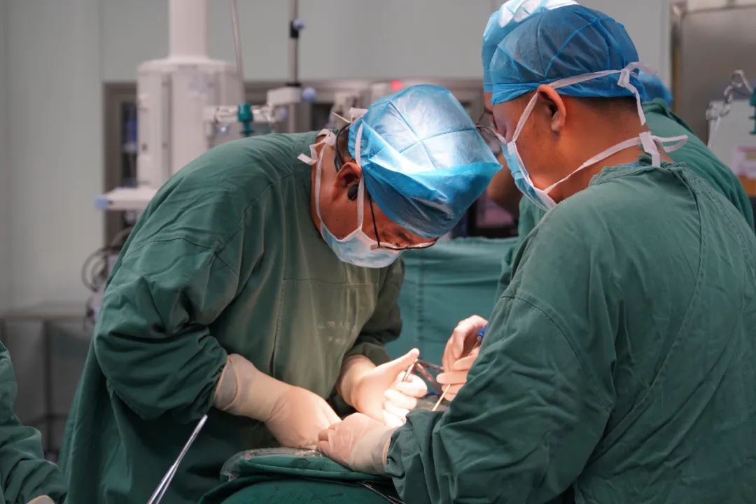 12日上午,国家巡回医疗队队长李新友在手术室内,为一名腰椎间盘突出症患者实施经后路椎管减压髓核摘除神经根松解椎间融合器植入植骨融合钉棒系统内固定术。
