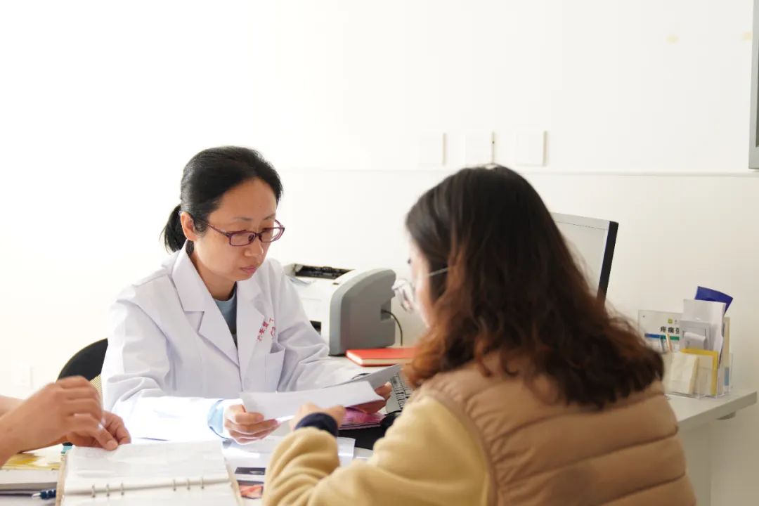 在肿瘤专家门诊,秦天洁专家正为患者进行细致的查体问诊。专家神情专注,耐心询问患者的症状、病史及生活习惯。轻轻触诊患者身体部位,仔细查找可能的异常。专家一边检查一边安抚患者的紧张情绪,详细解释每一个步骤的意义。