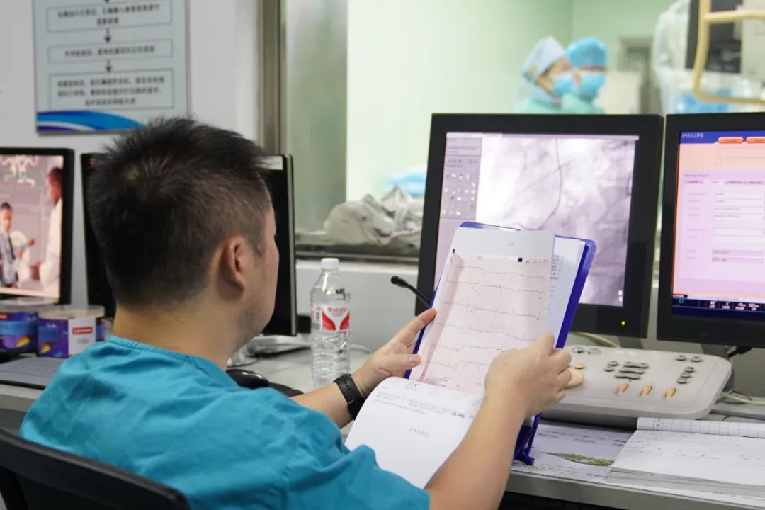 心内科专家罗永百在导管室为我院团队进行手术指导。