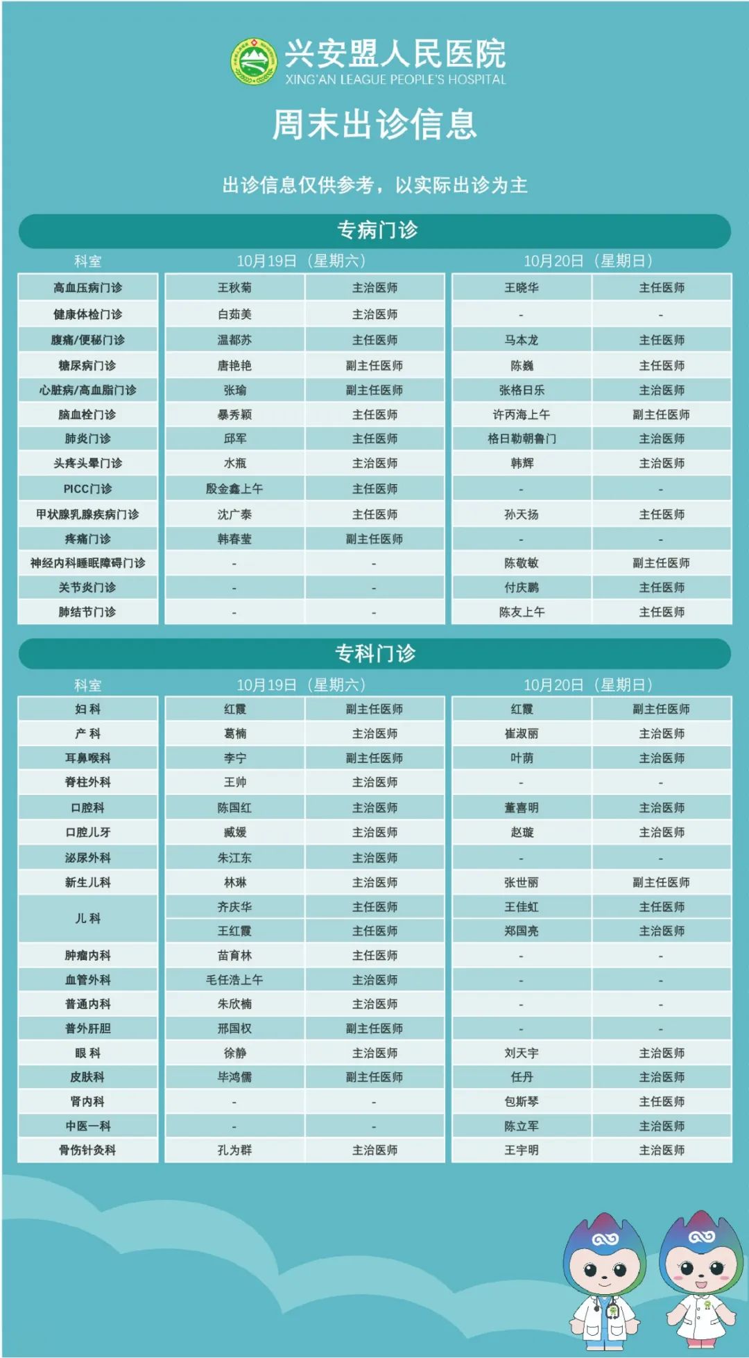『出诊信息』兴安盟人民医院10月17日-18日出诊信息