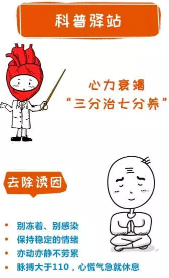 三、识别早期心衰:心功能正常或慢性心衰稳定期,患者出现原因不明的疲乏或运动耐力减低,以及心率增加15—20次/min,可能是左心功能降低或心衰加重的早期征兆。