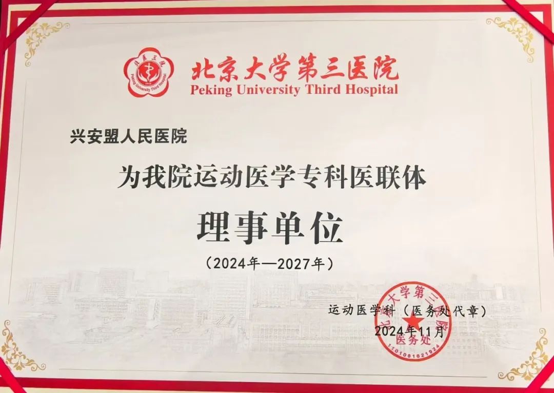 11月1日,北京大学第三医院运动医学专科医联体成立大会在北京大学医学部会议中心隆重举行。作为医疗卫生领域的重大盛事,来自全国各地的医疗同仁、专家学者和行业代表共计500余人参会。会上,兴安盟人民医院正式被授予北京大学第三医院运动医学专科医联体理事单位。
