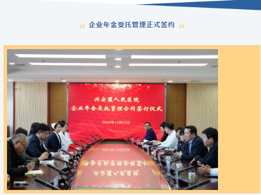 2024年12月2日,兴安盟人民医院隆重举行了企业年金受托管理合同的签约仪式,这标志着医院在保障员工长期福祉方面迈出了具有里程碑意义的一步。此次签约不仅彰显了医院对职工长远福祉的深切关怀,更为全体医务工作者提供了一份稳固而长远的养老保障,进一步巩固了医院作为负责任社会实体的良好形象,对吸引人才、增强团队凝聚力具有重大意义。