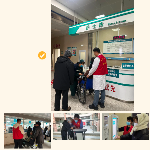 在日常工作中,医院门急诊安排志愿者进行志愿服务,为就诊群众使用自助设备预约挂号、缴费、检查报到、检验结果查询等提供帮助。开展免费陪诊志愿服务,做独自就诊的高龄老年人、特殊人群的“临时家人”,确保顺利就医,提供更满意、舒心的就诊体验,充分发挥社会志愿者、行政志愿者们的重要作用。
