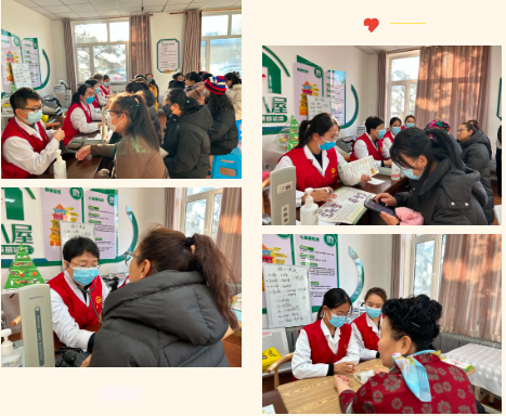 12月4日,全科医学科、疼痛科、神经内科医护志愿者深入乌兰浩特市胜利社区,为居民提供义诊、健康咨询、科普保健知识等健康志愿服务,走到群众的“家门口”,为百姓们送上盟医院的健康祝福。