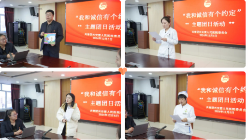 为深入学习贯彻党的二十届三中全会精神,加强医院团员青年诚信教育,12月5日,院团委组织团员青年开展了团课学习暨主题团日活动,活动由院团委宣传委员、内科二团支部书记徐鑫哲主持。