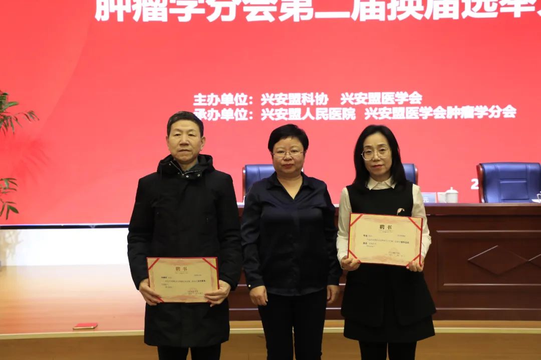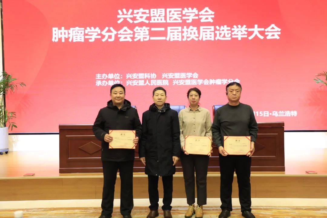 在此次换届选举上,经过公平、公正、公开的选举过程,产生了第二届肿瘤学分会委员。张明军主任继续连任本学会主任委员,提名张波主任为候任主任委员,提名特格喜白乙拉、孟玉梅、孙立国为副主任委员。大会分别为主任委员、副主任委员颁发证书。