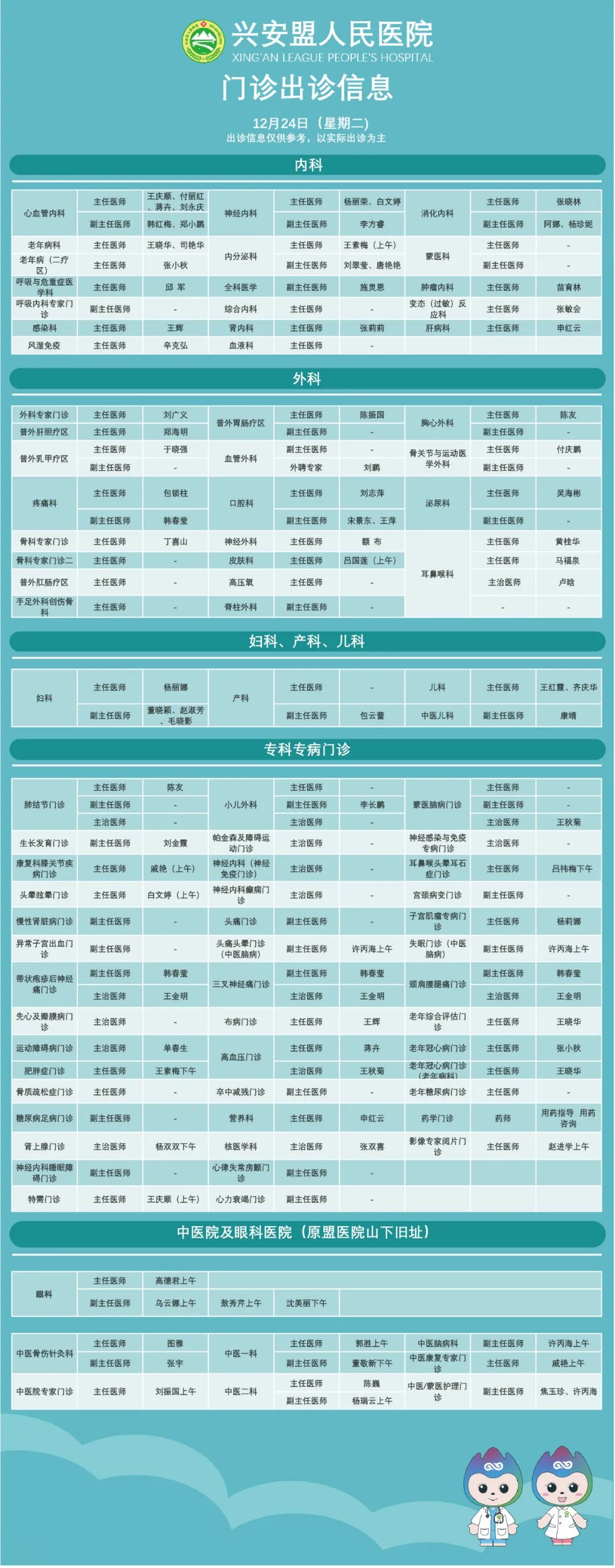 『出诊信息』兴安盟人民医院12月23日-25日出诊信息