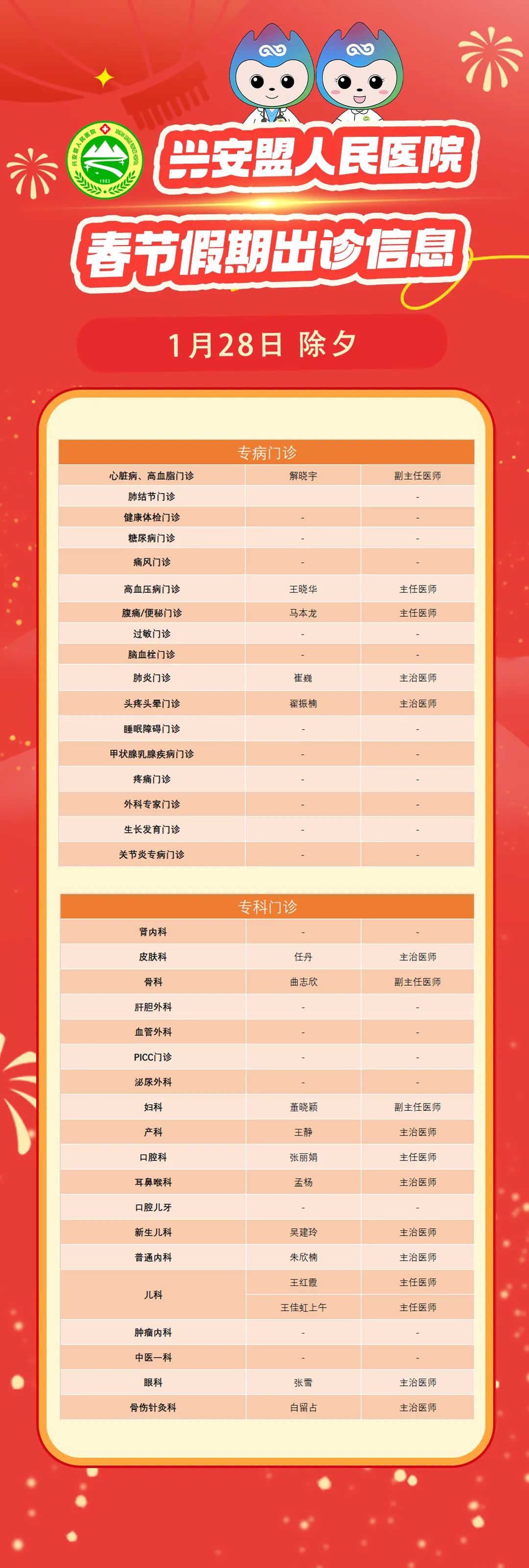 『出诊信息』兴安盟人民医院1月28日(除夕)出诊信息
