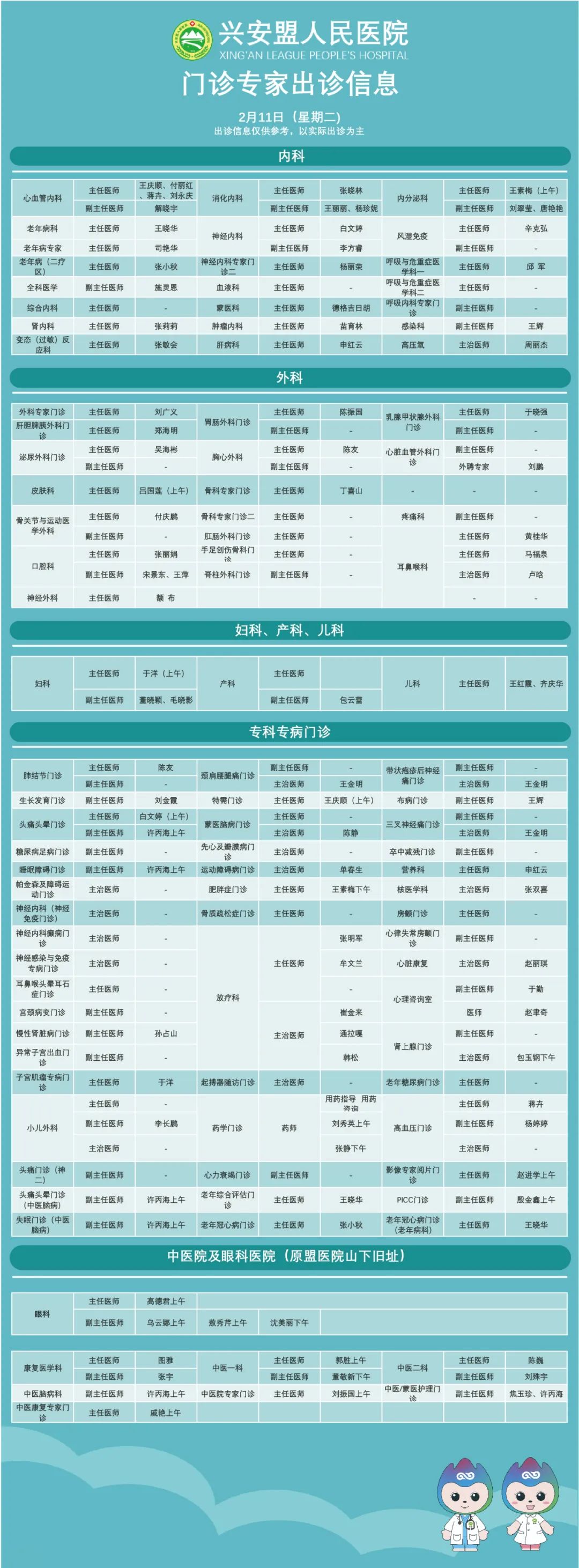 『出诊信息』兴安盟人民医院2月13日-14日出诊信息