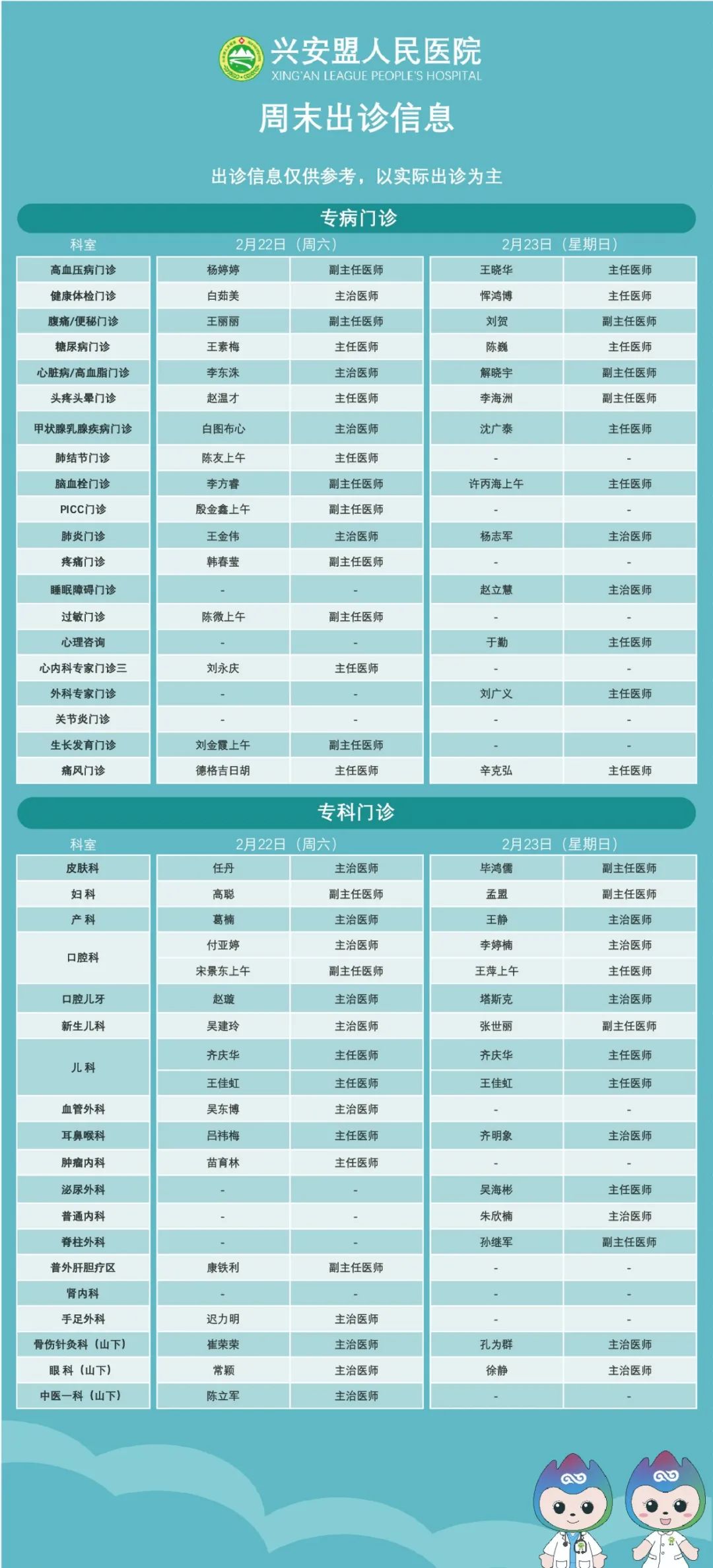 『出诊信息』兴安盟人民医院2月17日-19日出诊信息