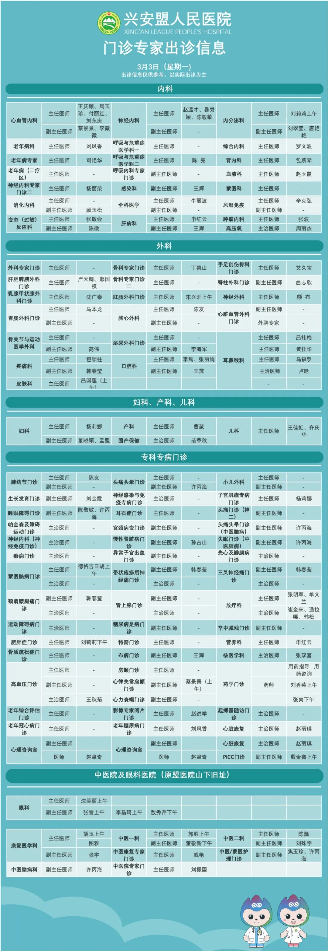 『出诊信息』兴安盟人民医院3月3日-5日出诊信息