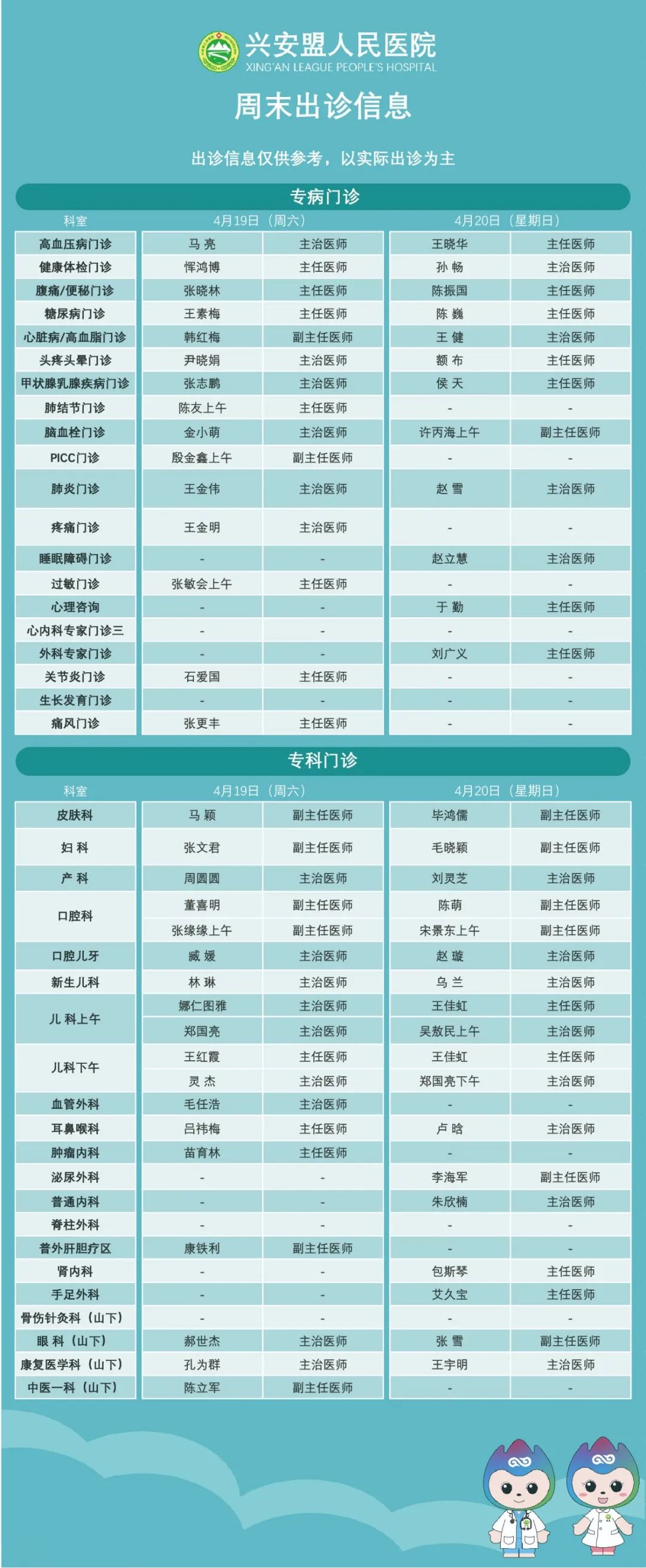 『出诊信息』兴安盟人民医院4月17日-18日出诊信息