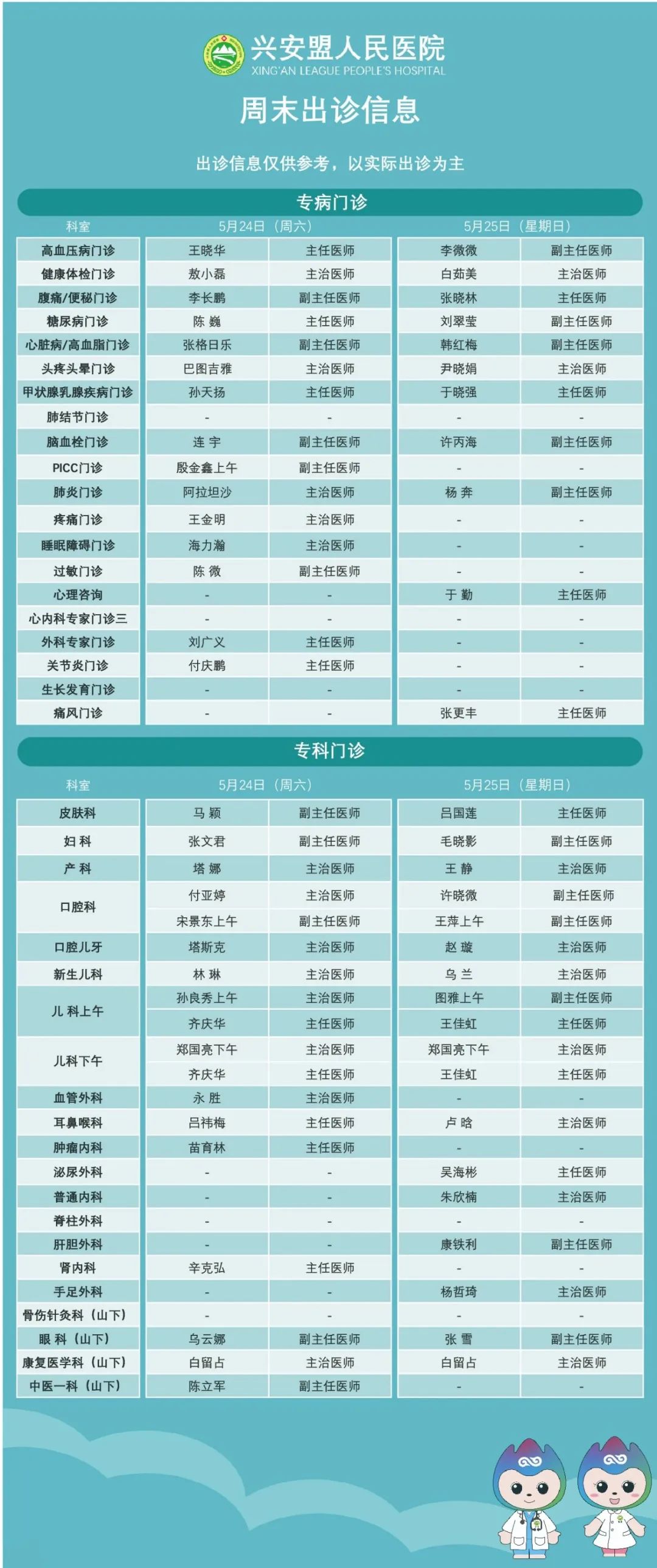 『出诊信息』兴安盟人民医院5月22日-23日出诊信息