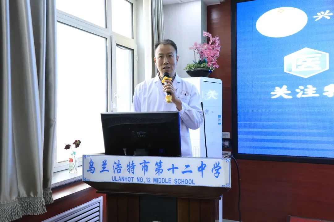 近日,兴安盟人民医院乳腺甲状腺科主任、主任医师沈广泰应邀走进乌兰浩特市十二中学,为教师们开展了一场主题为“关注乳腺甲状腺健康 筑牢疾病防治屏障”的科普讲座。此次活动是医院与学校深化医校协同共建的重要举措,旨在提升教师健康素养,助力健康校园建设。