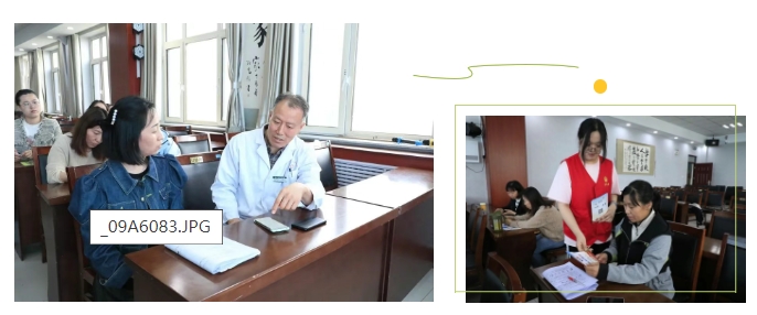 讲座中,沈广泰主任结合临床案例,用通俗易懂的语言讲解了乳腺及甲状腺疾病的临床表现、早期症状、自我检查方法及科学防治知识。针对教师群体常见的健康问题,他特别强调了压力管理、规律作息和定期体检的重要性。他特别强调了压力管理、规律作息和定期体检的重要性,并现场演示了乳腺甲状腺自我检查方法。在互动环节,教师们踊跃提问,围绕疾病预防、健康饮食等问题展开交流,现场还发放了健康手册100余份。