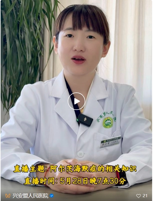 本期直播特邀兴安盟人民医院神经内二科主治医师金小萌为您带来阿尔茨海默症相关科普直播。