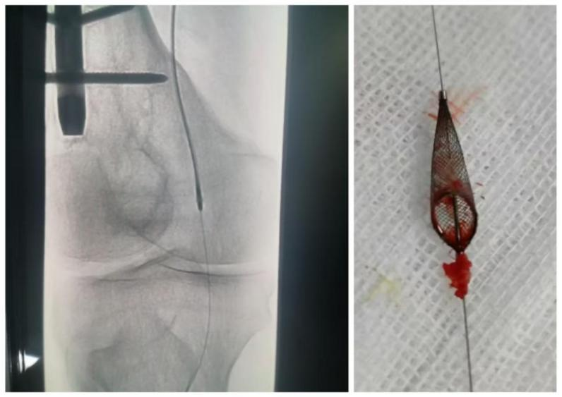 鞠大叔手术更为惊险:血管里的旧支架已经 “生锈”(内膜增生),刀头贴着支架内壁把增生组织一点点磨掉,全程没伤着血管,最后连保护伞里都吸出了一堆 “小碎石”!