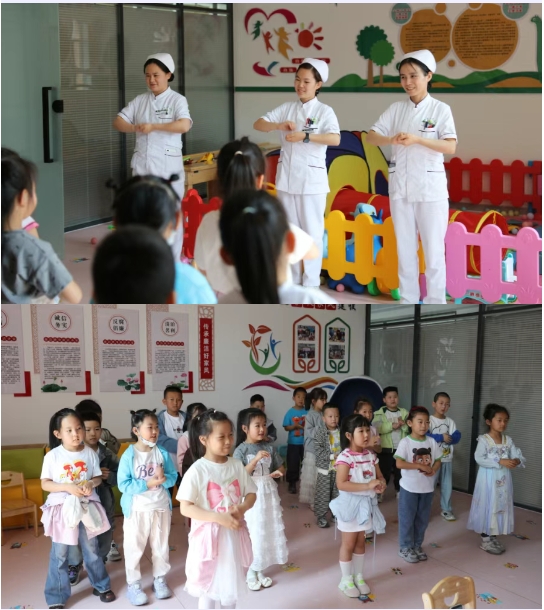 为了让孩子们轻松掌握健康知识,医护人员还教大家跳洗手舞。在欢快的音乐中,孩子们跟着医护人员舞动,学会了正确的洗手方法,认识到洗手对预防疾病的重要性。
