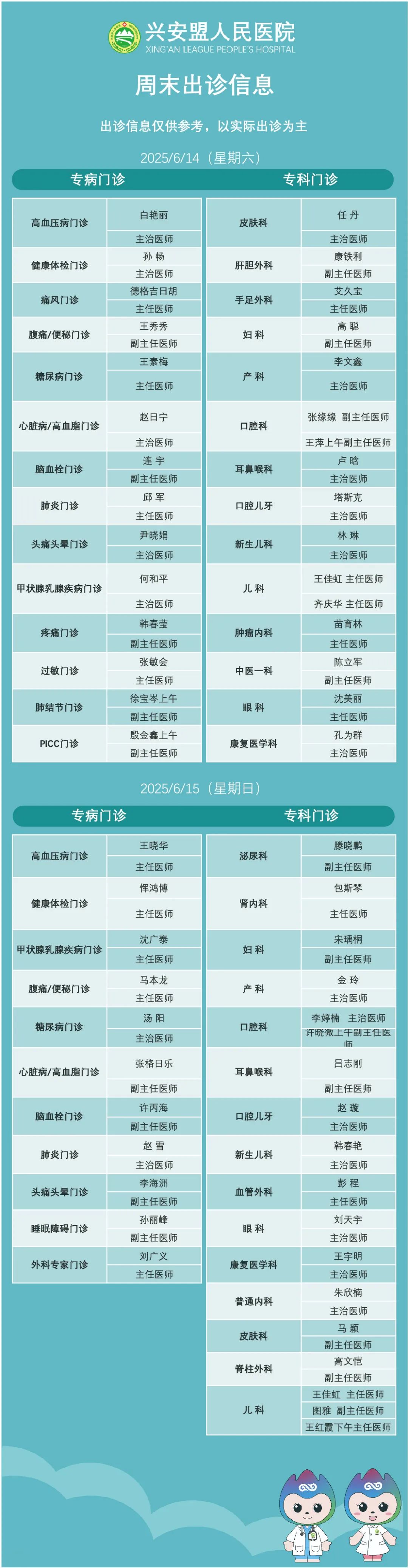 『出诊信息』兴安盟人民医院6月12日-13日出诊信息