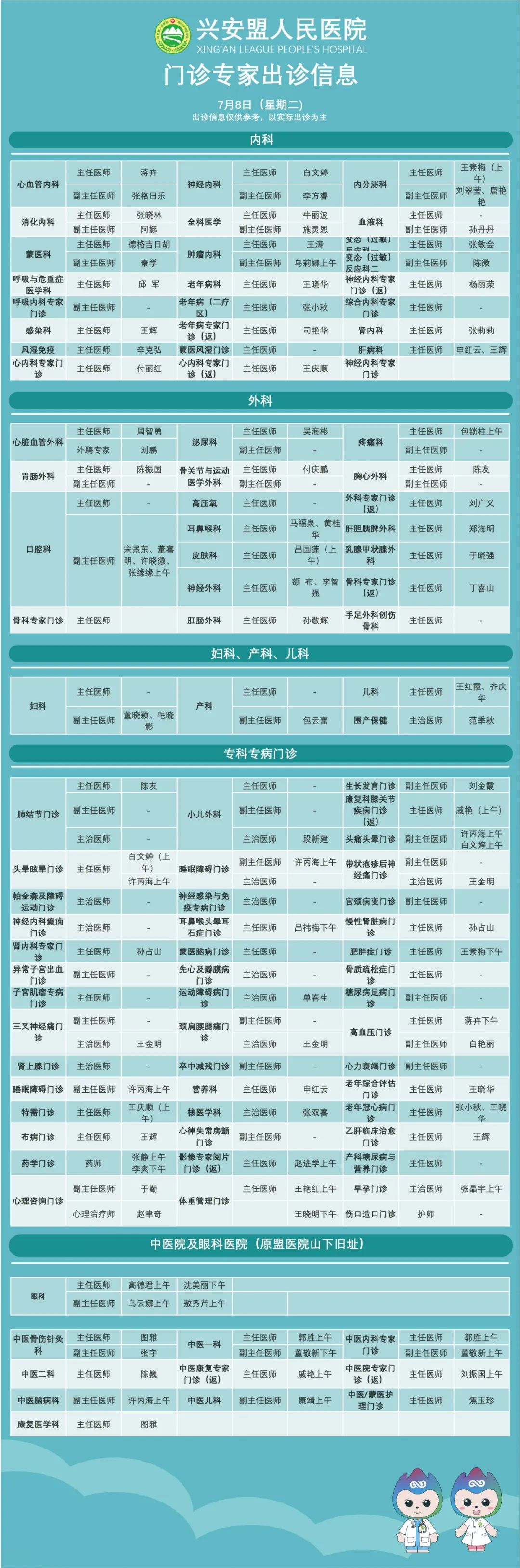 『出诊信息』兴安盟人民医院7月7日-9日出诊信息
