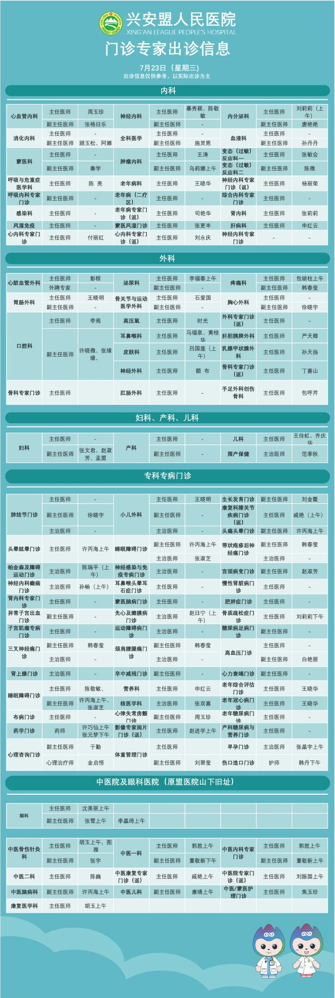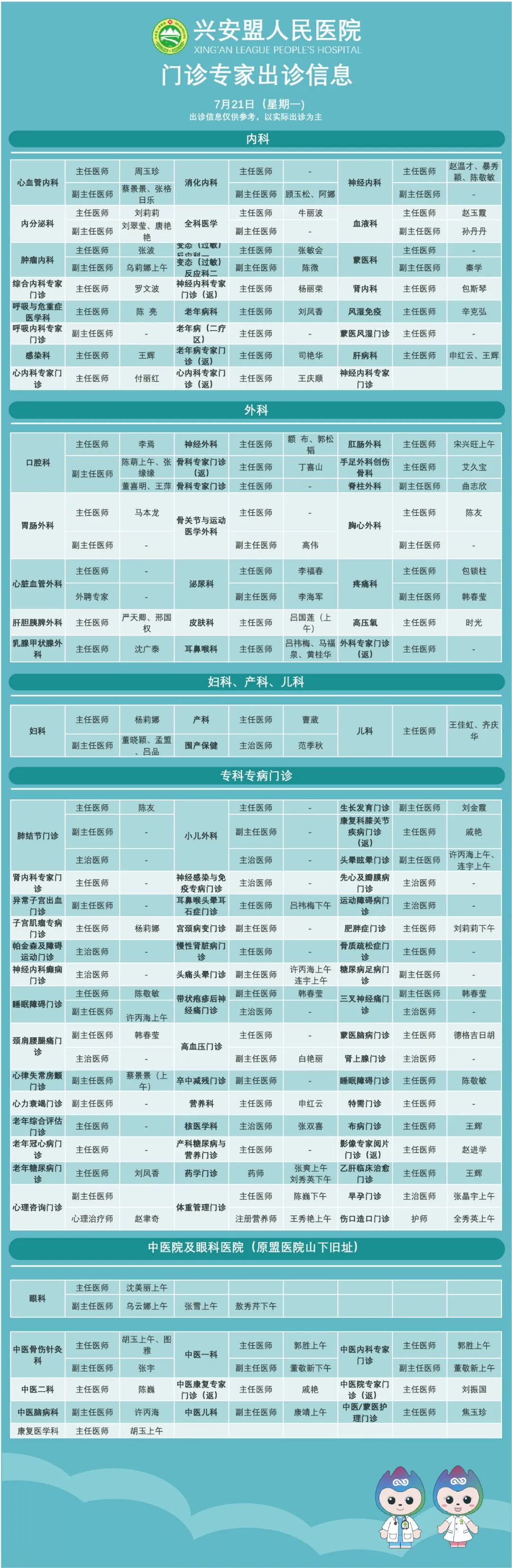 『出诊信息』兴安盟人民医院7月21 日-23 日出诊信息