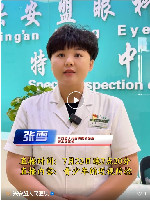 本期直播特邀兴安盟人民医院眼科副主任医师张雪为您带来青少年的近视防控相关疾病科普直播。