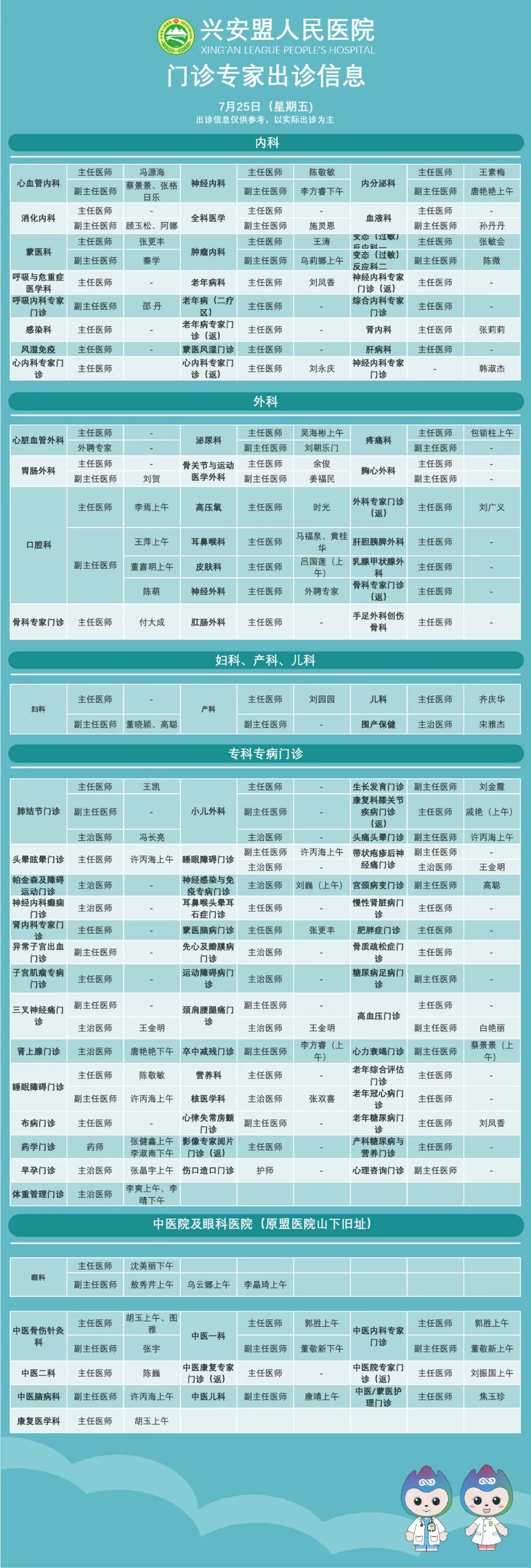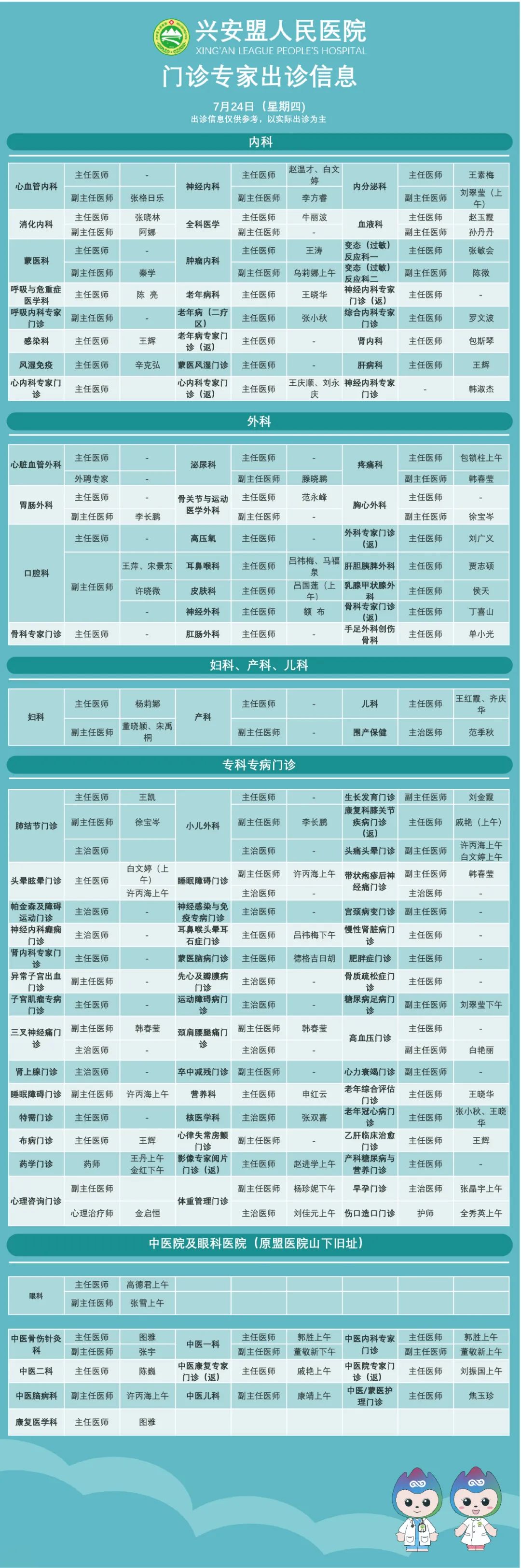 『出诊信息』兴安盟人民医院7月24日-25 日出诊信息