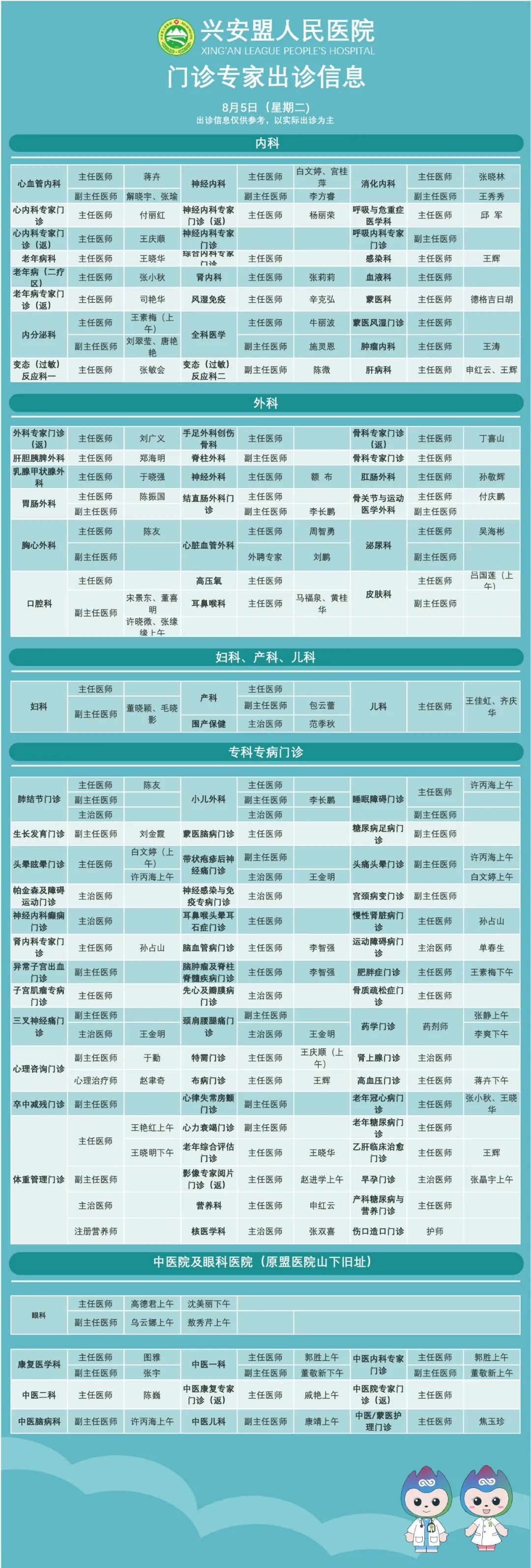 『出诊信息』兴安盟人民医院8月4日-6日出诊信息