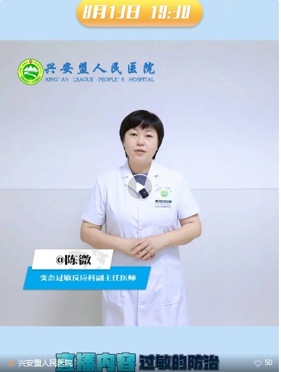 本期直播特邀兴安盟人民医院变态过敏反应科副主任医师陈微为您带来过敏的防治科普直播。