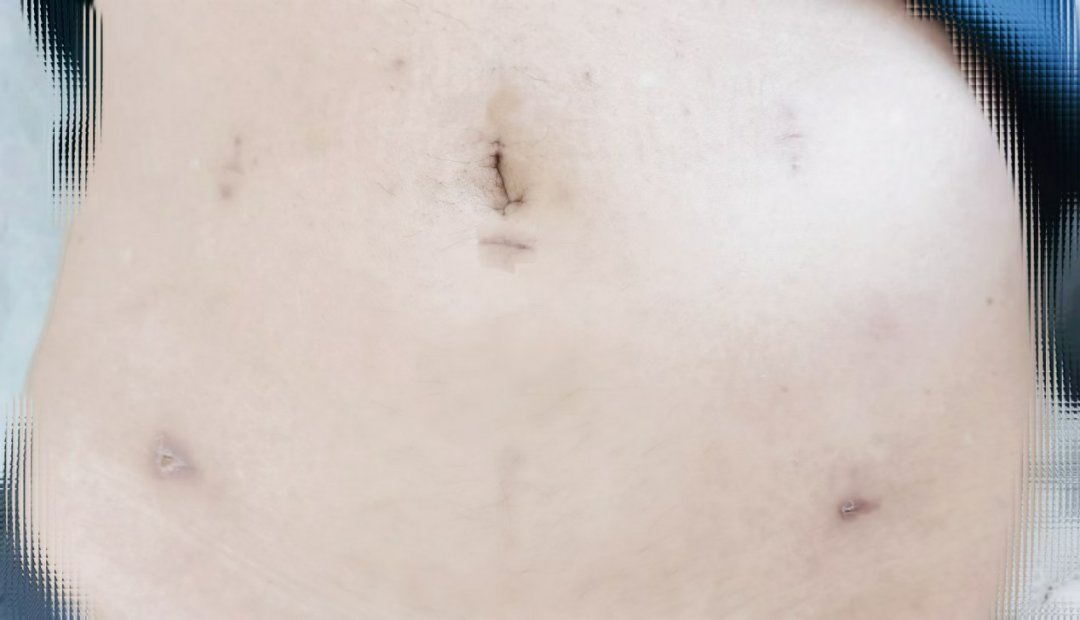 腹部仅留下几个几乎看不见的小孔疤痕,最大程度保护了腹壁的完整性,避免了辅助切口相关的疼痛、感染、切口疝等风险,极大提升了患者术后的舒适度和美观度。