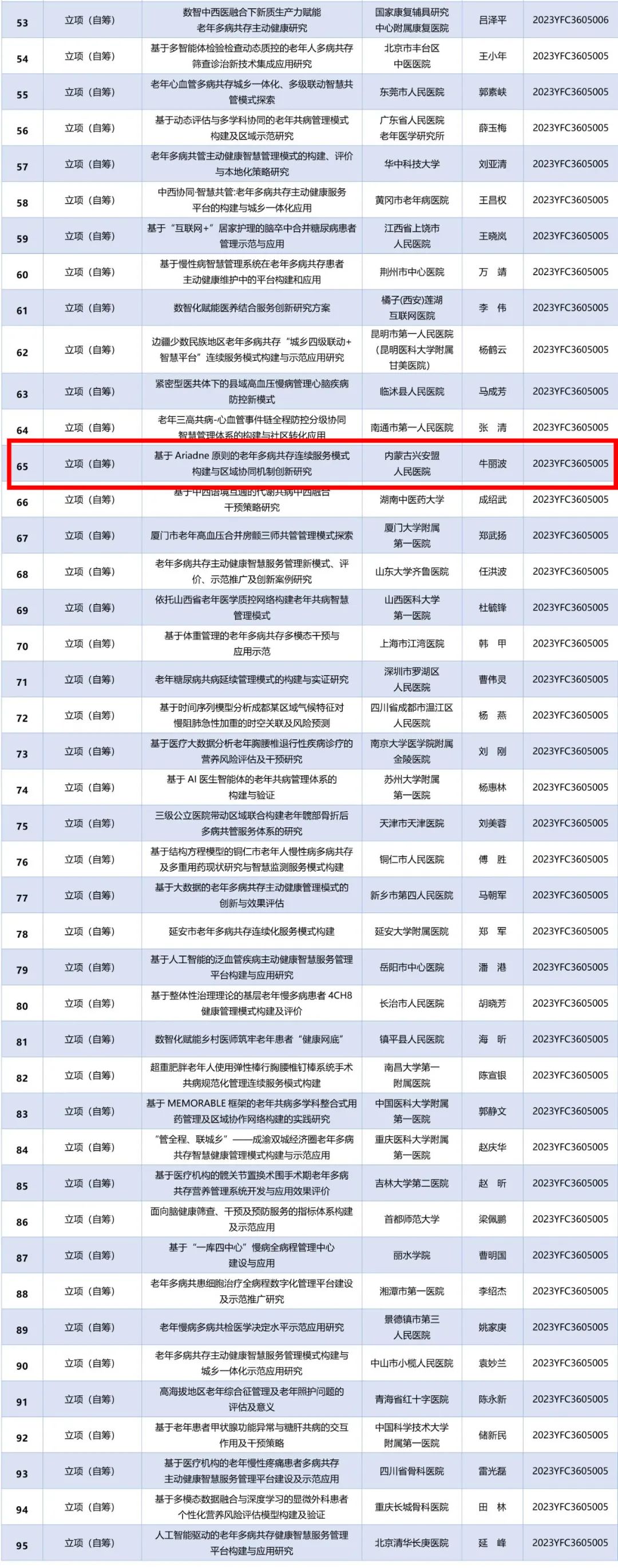 近日,国家卫生健康委医院管理研究所正式发布 “老年多病共存连续服务模式构建及区域示范应用” 项目课题立项名单。在全国95家获批立项的医院中,兴安盟人民医院全科医学科牛丽波申报的项目《基于Ariadne原则的老年多病共存连续服务模式构建与区域协同机制创新研究》成功入选,标志着我院在慢病多病管理领域的科研能力与服务创新获得国家层面的高度认可,也为区域老年健康服务体系建设注入强劲动力。